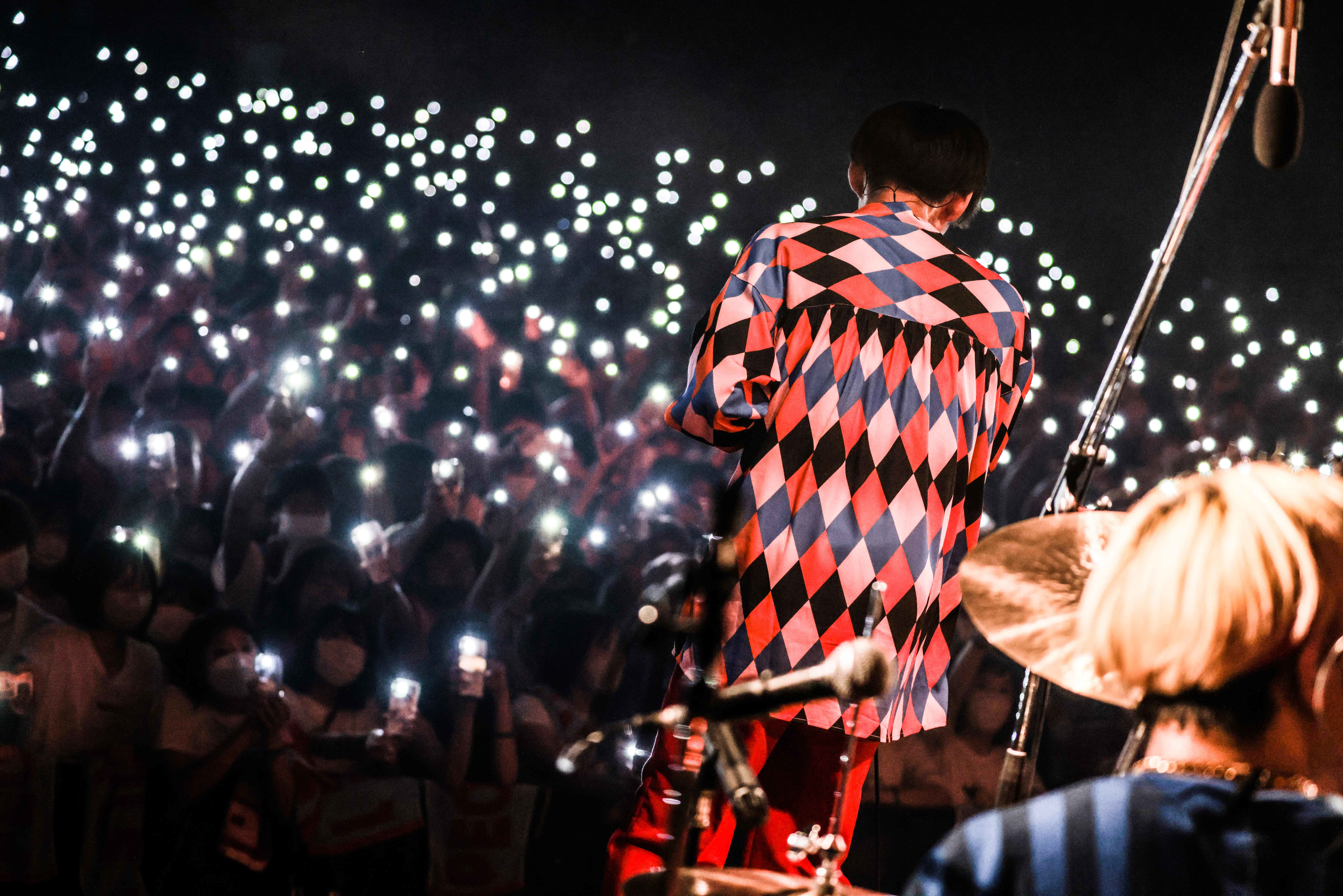 ダンサブルにミクスチャーサウンドを奏でる「怪獣」でライブをはじめると、ジャンプとクラップがとまらない。ソウルフルなDeuのヴォーカルが先導すると多幸感に支配されていく会場。芯のあるItoの声に魅了される「魔法の歌」には、ひとりひとりが持つ迷いや葛藤の物語と重ね合わせることができる包容力がある。そして、「こんな時間にライブをすることもなかなかないんで」とItoがみんなにスマホライトの点灯をお願い。光の海がATMCをうめつくすと「うわぁ……めっちゃきれい!」完全に素の声がもれるメンバーだった。ゆらゆらと揺れるライトとともに奏でられた「常夜燈」で、<未来がキラキラと>という歌詞とリンクする景色に胸が熱くなる。