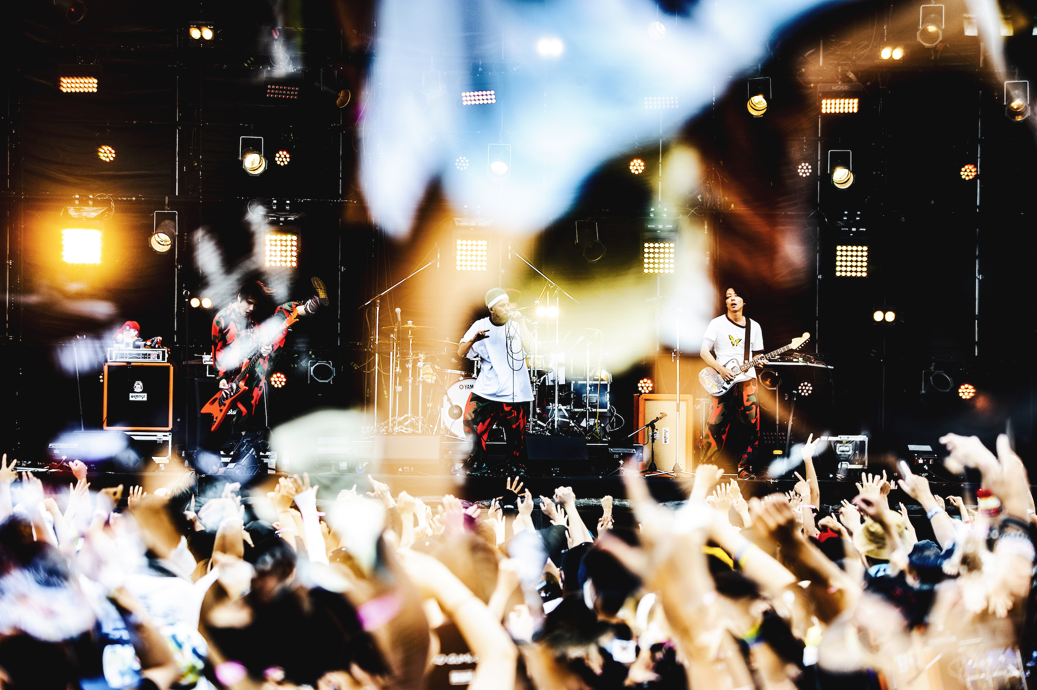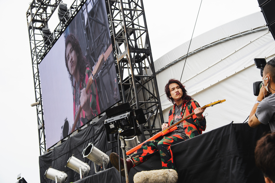 「基本的に炎上気味、ギリ大丈夫みたいなバンドをここに立たせてる『RUSH BALL』、まあまあ狂ってるフェスティバルだなと思います」と主催のGREENSに賛辞を送ったタナカ。ヤンチャな面もありつつ、初見の人もバッチリ巻き込んだアクトで最高潮に会場を盛り上げたスサシだった。距離の近いライブハウスも良いが、野外のステージは彼らによく似合っていた。