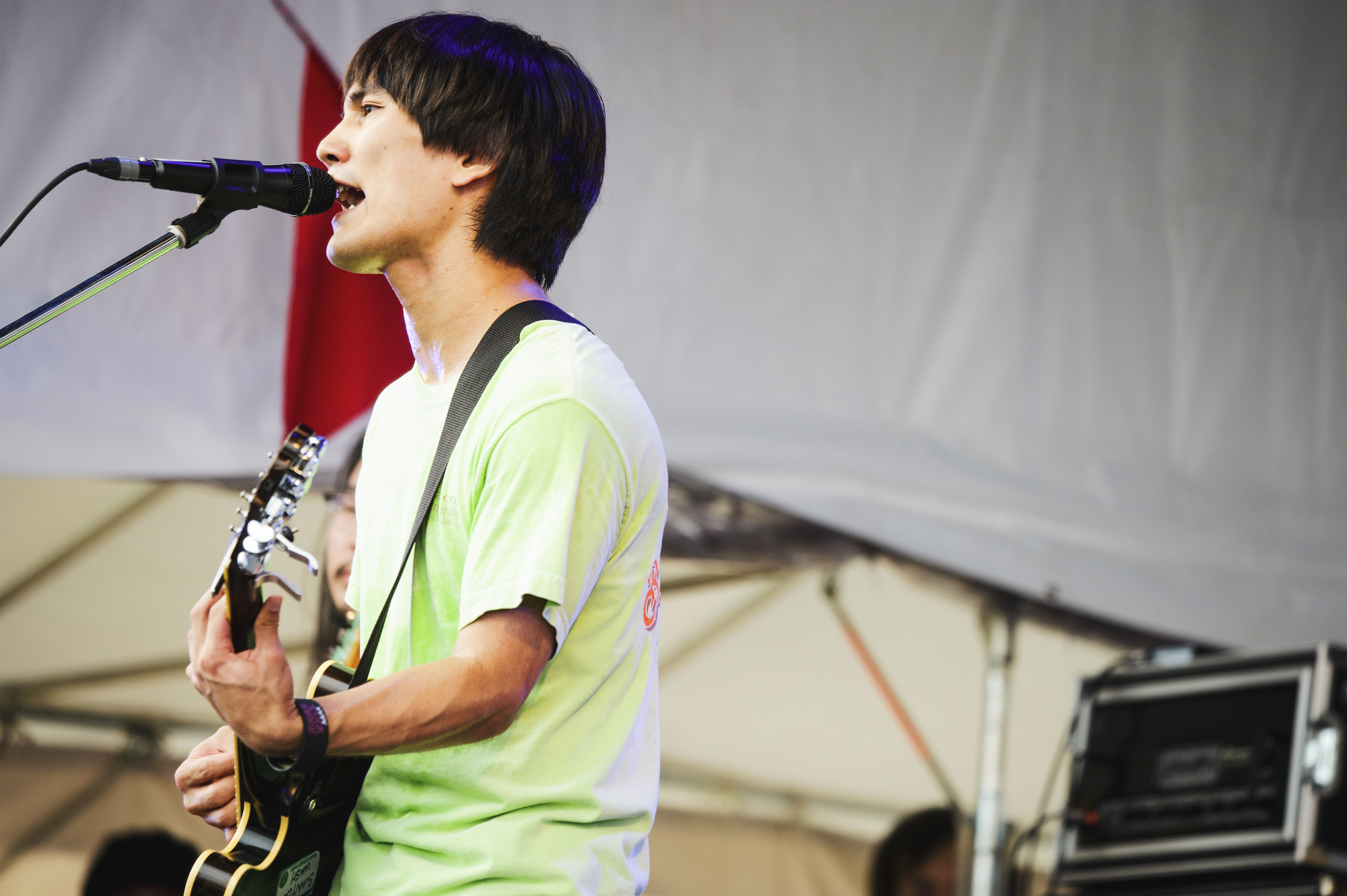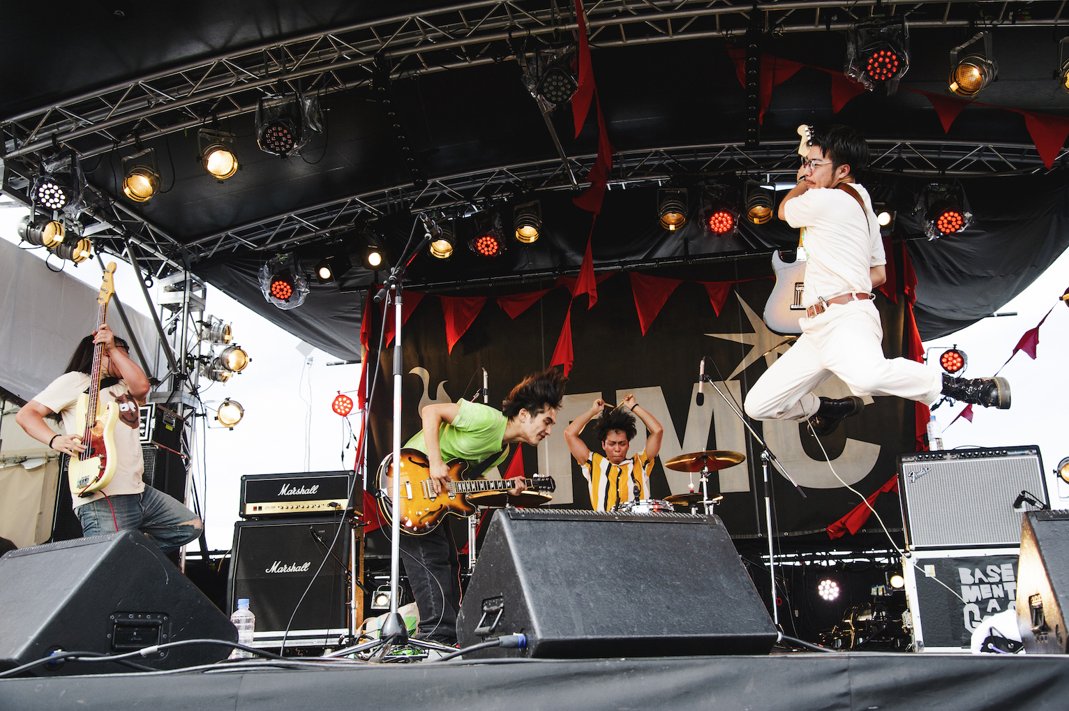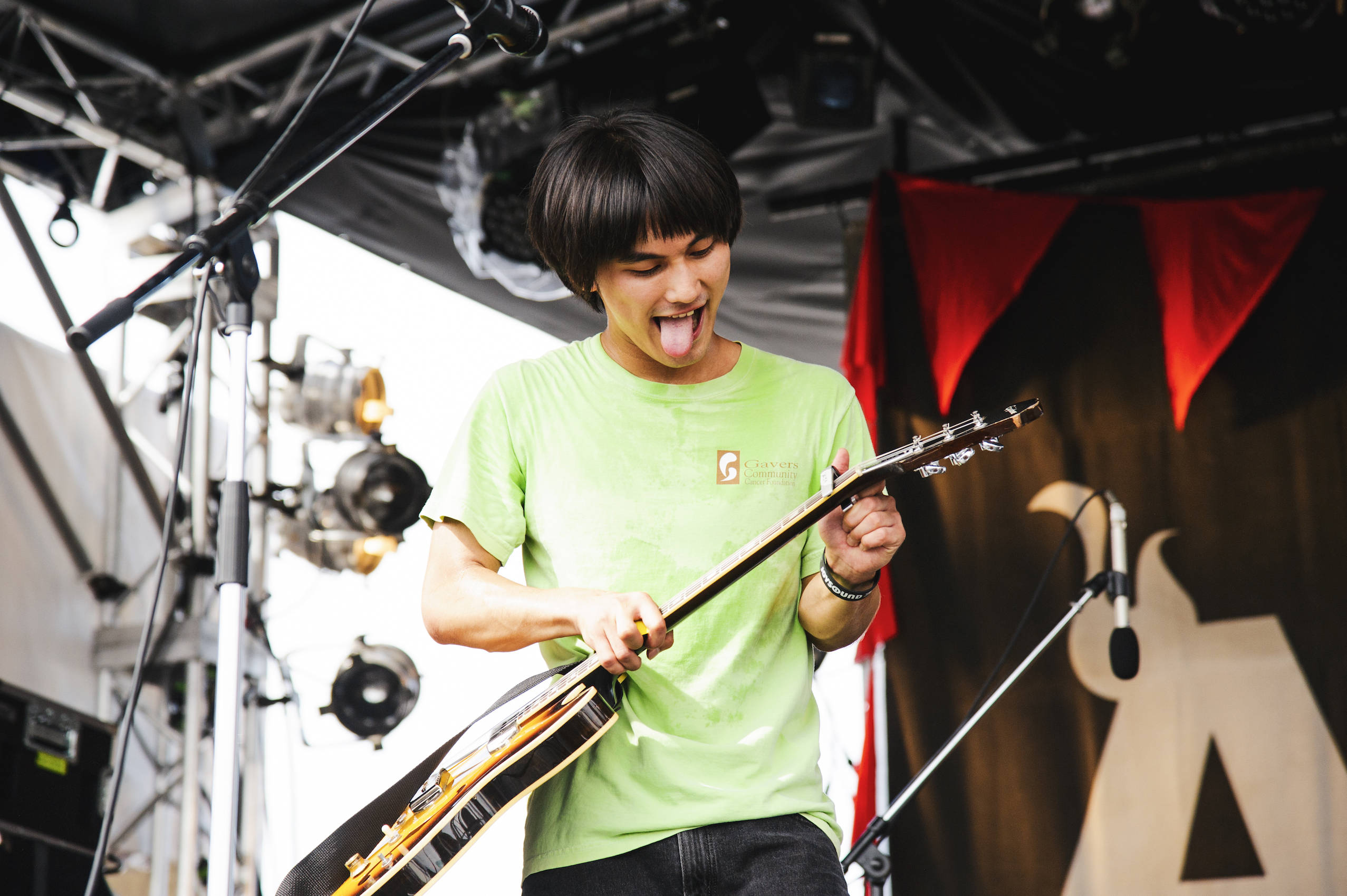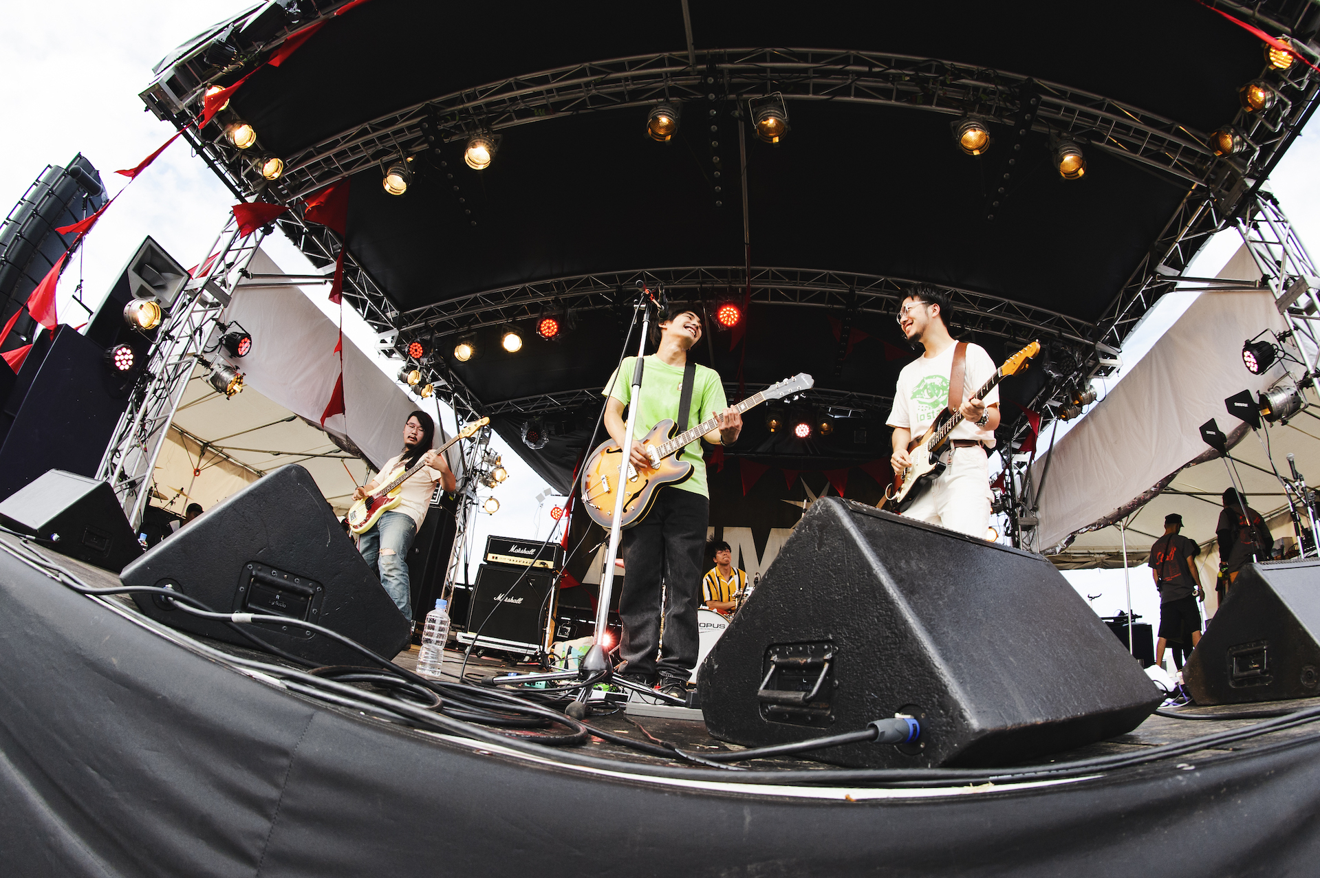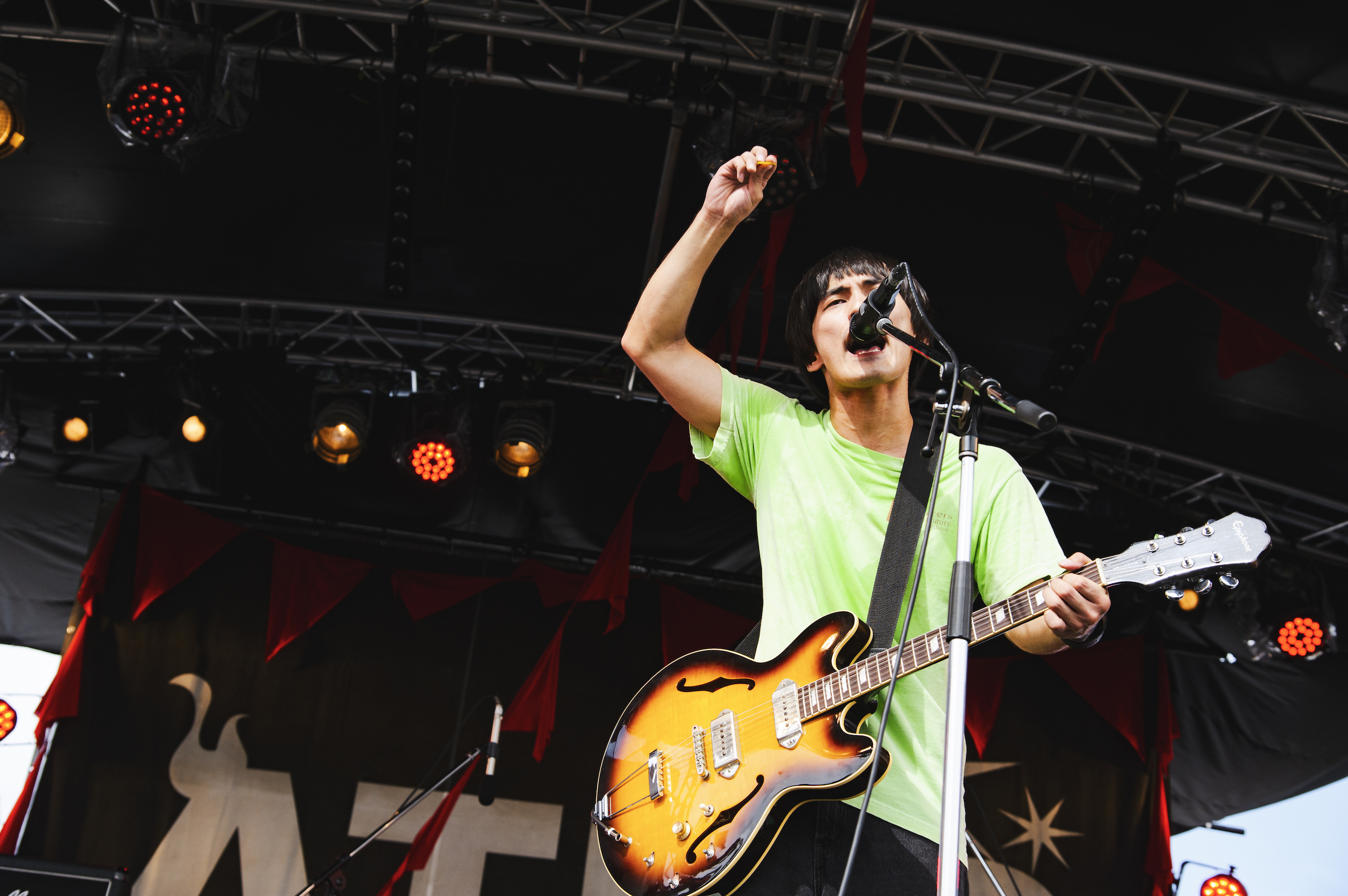 昨年末、活動に終止符を打ったSUNNY CAR WASHのボーカリスト・岩崎優也が、7月からソロプロジェクトを始動させ、早速『RUSH BALL』のステージに。3人のサポートメンバーとともに現れた彼は、まず「ポラリス」で久しぶりに関西のファンに元気な姿を見せると、心を弾ませるストレートなロックで観客もクラップも呼び寄せる。さらにここからは7月に発表したソロ初のEP「それでいい」からの新曲たちを惜しげもなく披露。「キャンディ・パレード」の跳ねるリズムはオーディエンスをバウンドさせ、おぼろげな輪郭の詞世界もハッピーな色へ変える。すると本人もスマイルになって「愛し合ってるかーい?」と呼びかけるが、突如「あ、海が見える(笑)」と急ハンドル。実は、「緊張する! 僕たちね。2回目のライブなんですよ」ということだったらしい。