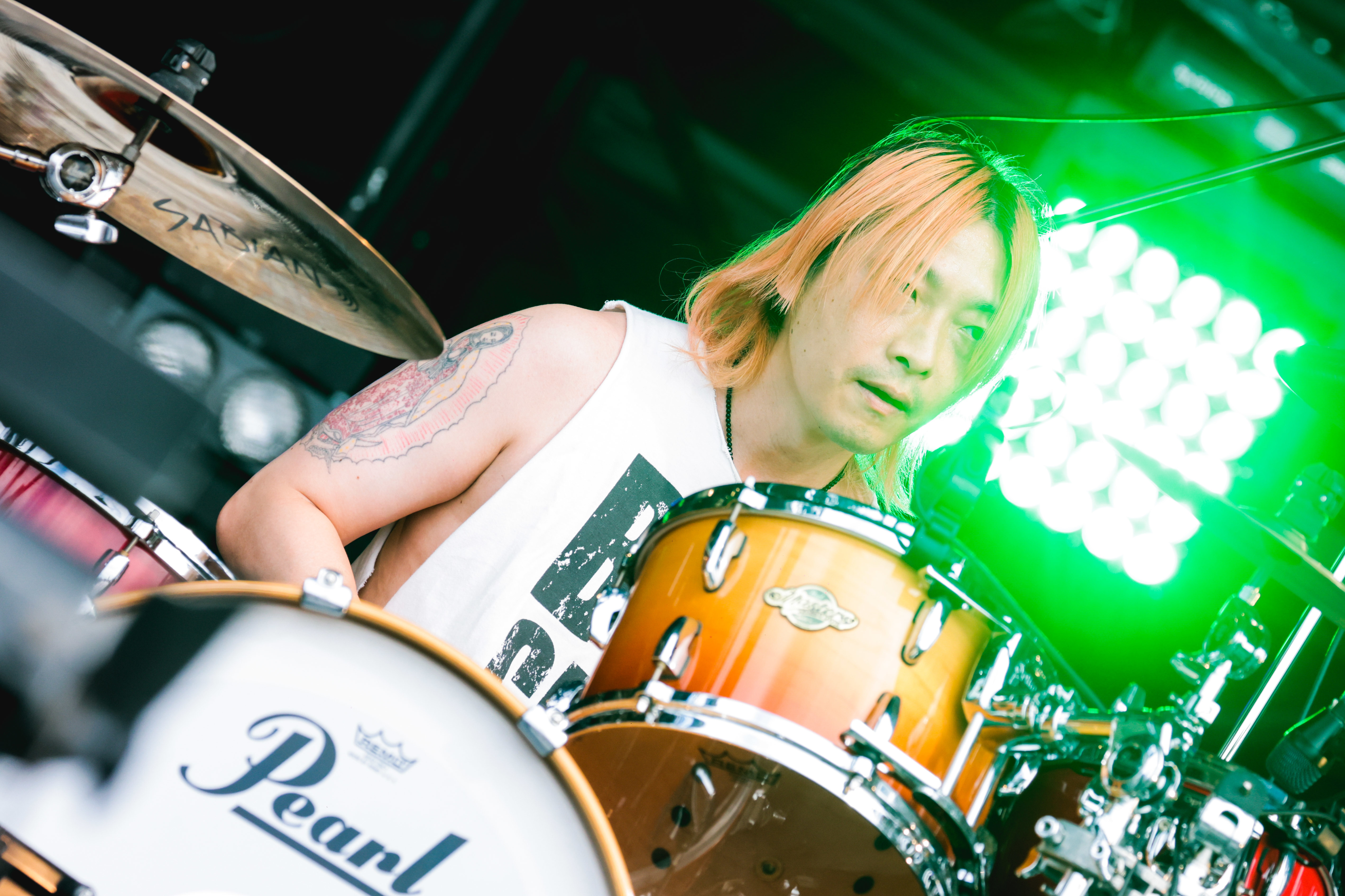 SEと共にステージに登場したメンバーがそれぞれの楽器を持つ中、ナカヤマシンペイ(Dr)がドラムセットの上に立ち、会場を見渡している。その姿を讃えるように、場内から「yeah!」という歓声が響く。そして、「Melodic Storm」、「From Noon Till Dawn」と、軽快かつアグレッシブなライブチューンを立て続けに披露した後、ホリエアツシ(Vo.Gt)がオーディエンスに向かって笑顔で言う。