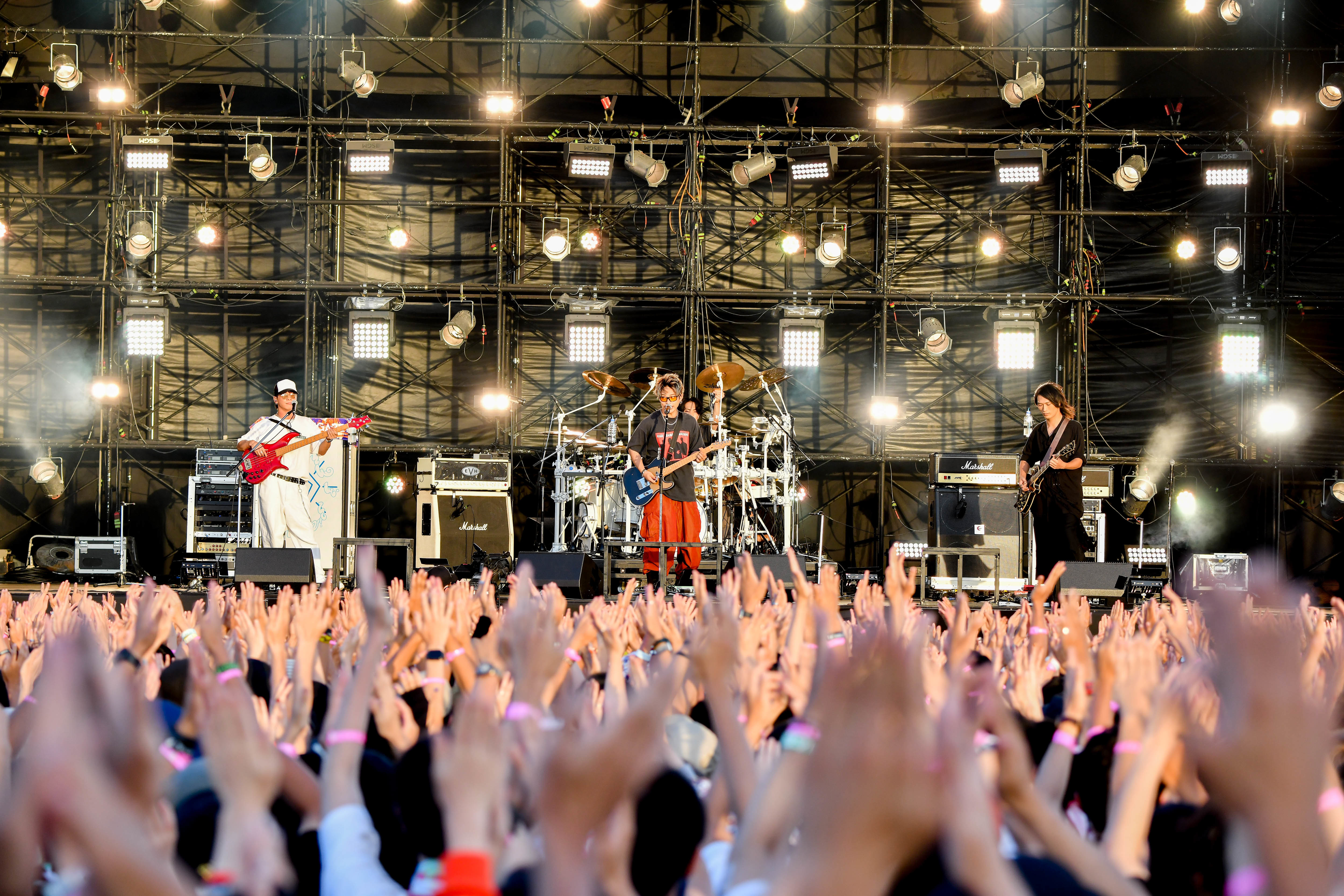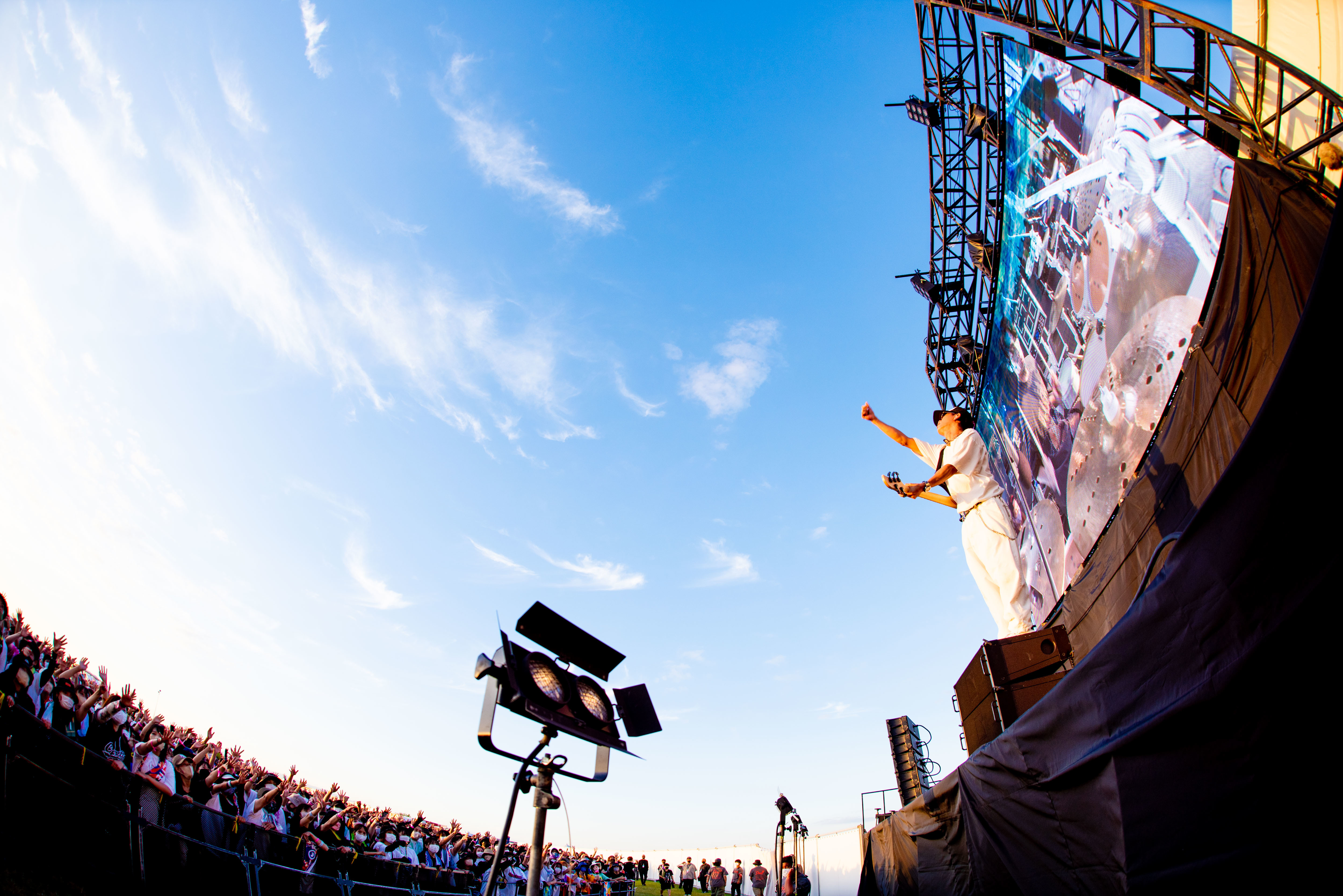 最終曲を前に山中は「この3年でどんな道を歩んできたか。1歩1歩の積み重ねを大事にして、あとは音楽を楽しむだけ。これから先、もっとやばいロックシーンが待っているはず」と、この日のステージ、そしてこれからのライブシーンに懸ける思いを語る。そして「最後に叫びたいから」と「5150」へ。初期~最新、キラーチューンといまこの瞬間に最新型のバンドの音を余すことなく打ち出していく姿はなんとも頼もしい。そしてオーディエンスもフィールドの前方は歓声をあげ、後方では声は出さずとも高く手を掲げて音楽を楽しんでいる。そんな思い思いの音楽を楽しむ観客の姿に、彼が語り掛けた言葉の答えがそこにあったように思えた。