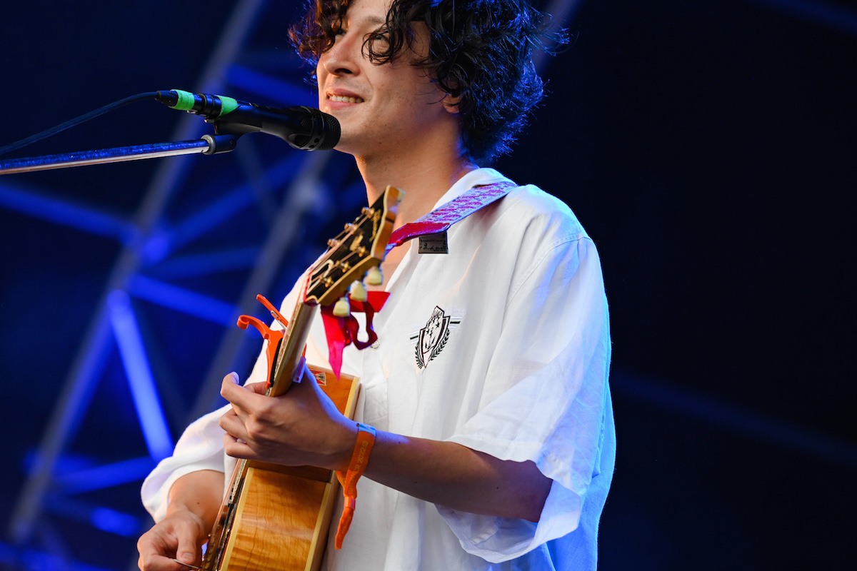 ここで「よかったよ。『SWEET LOVE SHOWER』、復活して」と三船。「今日はその3年分の想いと、出られなくなった中村佳穂(※体調不良のため出演キャンセル)のためにこの曲をやろうと思います。踊ろうぜ」と3曲目には「Ubugoe」を披露した。「BLUE SOULS」は三船特有の抑揚ある歌い回しが存分に発揮された美しいバラードだが、一方「けもののなまえ」では彼のスキャットがいち楽器としてバンドに混ざり合う瞬間もあり、ボーカリストとしてのすごさも感じられる流れ。「前に『SWEET LOVE SHOWER』に出た時から世界はガラッと変わっちゃったけど、またこうしてみんなと音楽を通じて会えたのが嬉しかったです。またどこかでお会いしましょう」と最後に「極彩|IGL(S)」を届け、彼らはステージを去った。