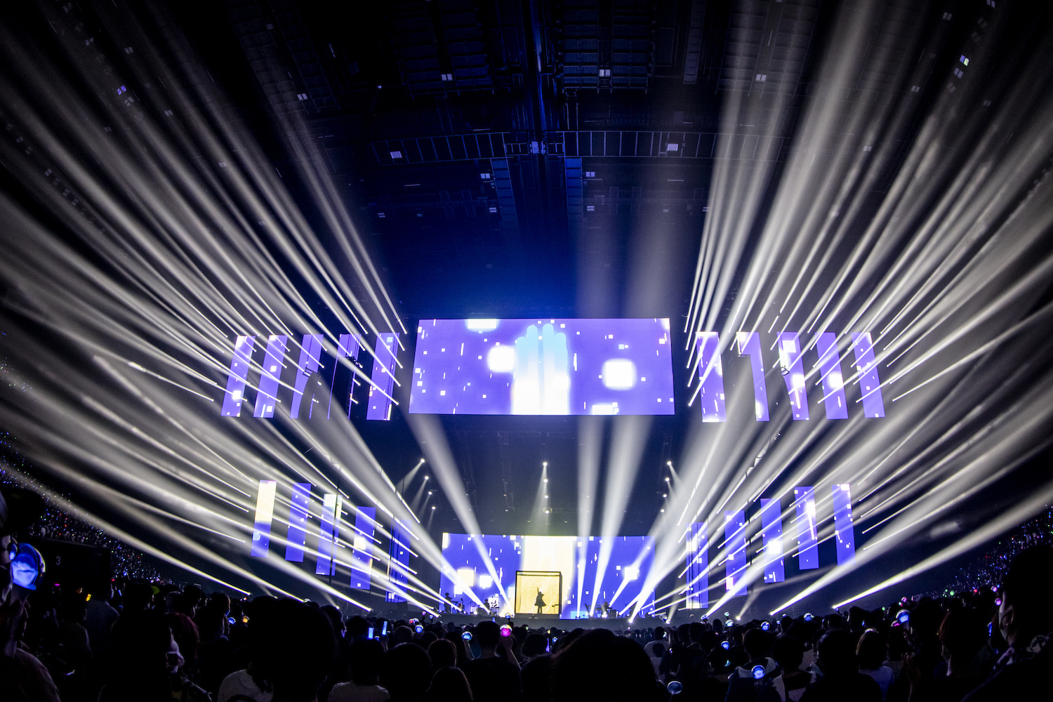 「ダーリンダンス」までを終えると、光と音による演出の間にステージセットが変わり、直方体の外へ飛び出すAdo。そうしてライブによく似合うアッパーチューン「FREEDOM」からクライマックスに突入していく。振り返れば、本編19曲目「ザネリ」を歌い終えるまでMCなしというストイックな構成。徹底的に歌のみで魅せるエンターテインメントが間延びせず成り立つのは、先述の通り、やはり彼女の歌の力によるところが大きい。また、ライブ終盤に差し掛かっても疲労を見せないどころか、むしろ熱量がどんどん上がり続けているのが恐ろしくも痛快だ。「今日はここに立てて幸せでした。また私と列車に乗ってください。最後の曲、聴いてください」とライブタイトルに因んだ挨拶(直前に「ザネリ」を歌った意味も回収)ののち、「心という名の不可解」の魂の歌唱で本編は終了。しかしアンコールも“おまけ”的なものではなく超スペシャルな内容。アカペラで始まった「新時代」で2万人の心を再び瞬時に掴むと、2曲目はなんと、Adoがルーツとして公言している椎名林檎のカバー「罪と罰」だ。冒頭のシャウトからしてはち切れんばかりの狂気が伝わってくる。
