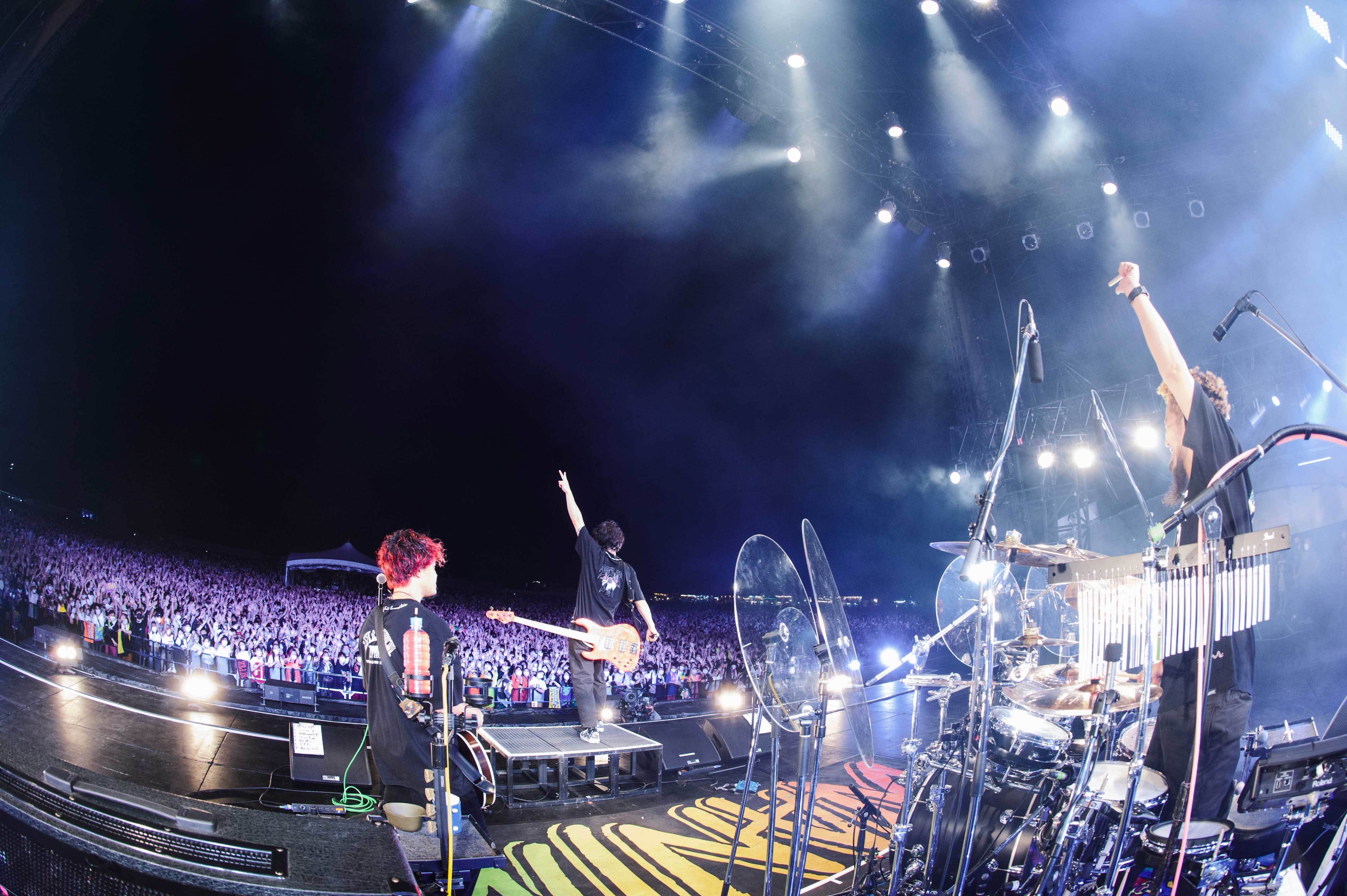 いつもならステージ上でふざけてみたり、目がなくなるくらい満面の笑顔でパフォーマンスする3人だけど、この日のメンバーはギラついた貪欲な表情をしていた。スクリーンに映るKENTAの目は鋭くて、このステージに懸ける熱量の高さが窺える。遠慮は一切なし、全力投球のパフォーマンスで「Japanese Pride」、「つづくもの」とぶつけていく。