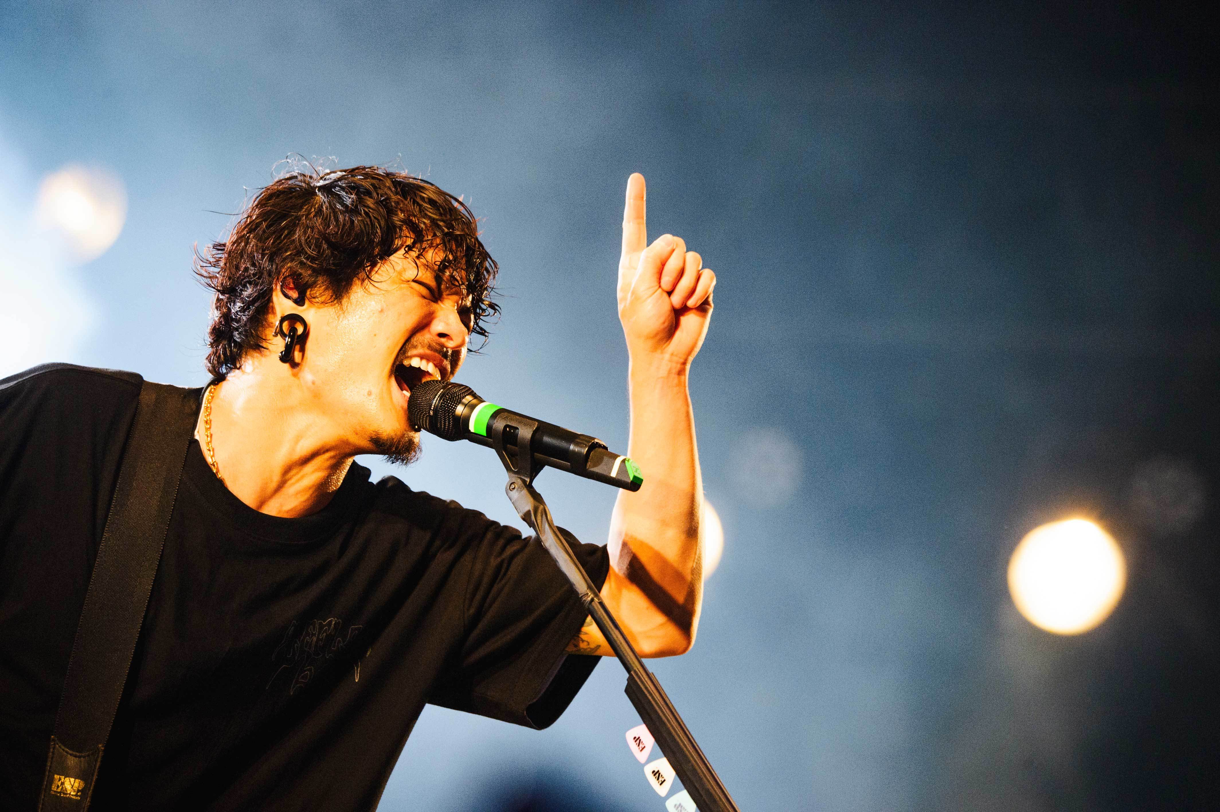より高みへと昇りたい、前へ進みたい、そんな思いを真っ直ぐに届ける言葉の数々。KENTAの歌声がより際立つエネルギーに満ちた楽曲を、拳を突き上げ受け止める観客たち。マスクをしていても満足げな表情はステージにいる3人も伝わっていて、「大好きっちゃけんね。『RUSH BALL』、大阪、みんなが大好き。もう失いたくない。一緒に作っていこう!」と、共に歌おうと「ともに」へ。