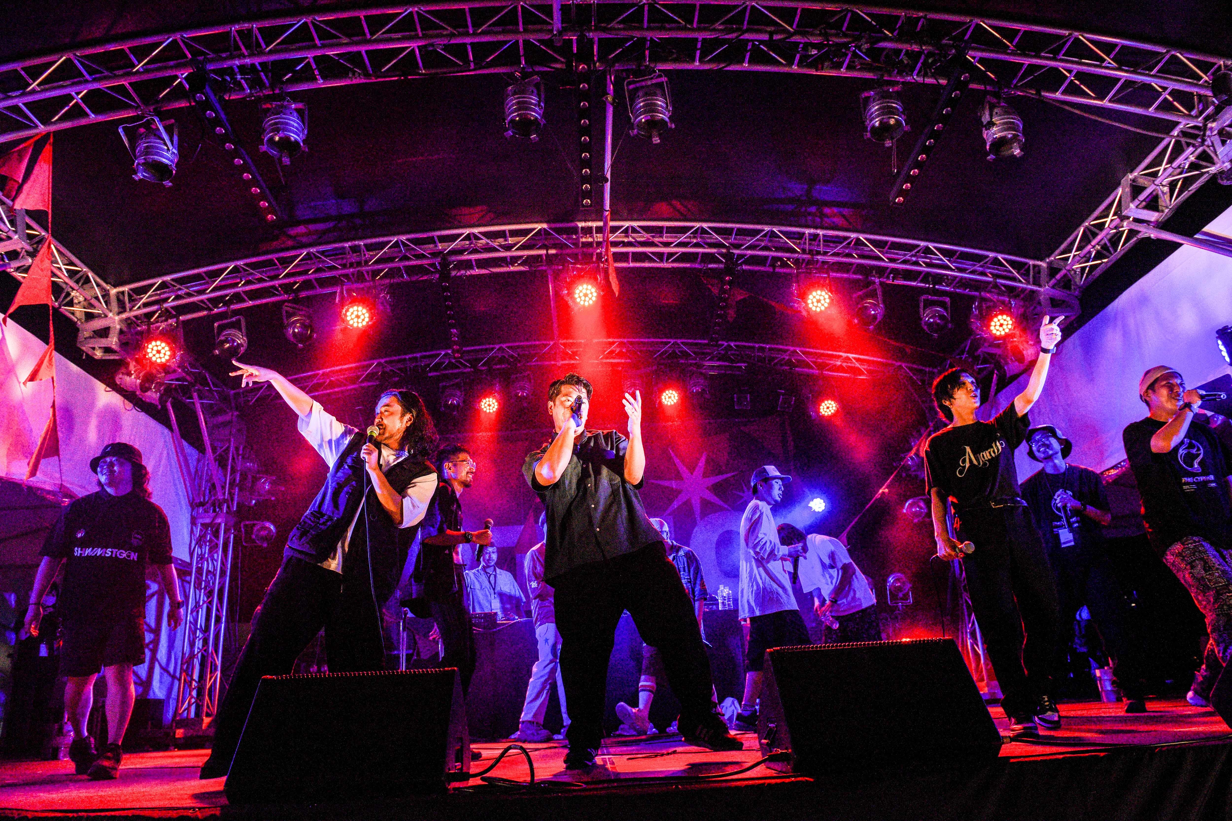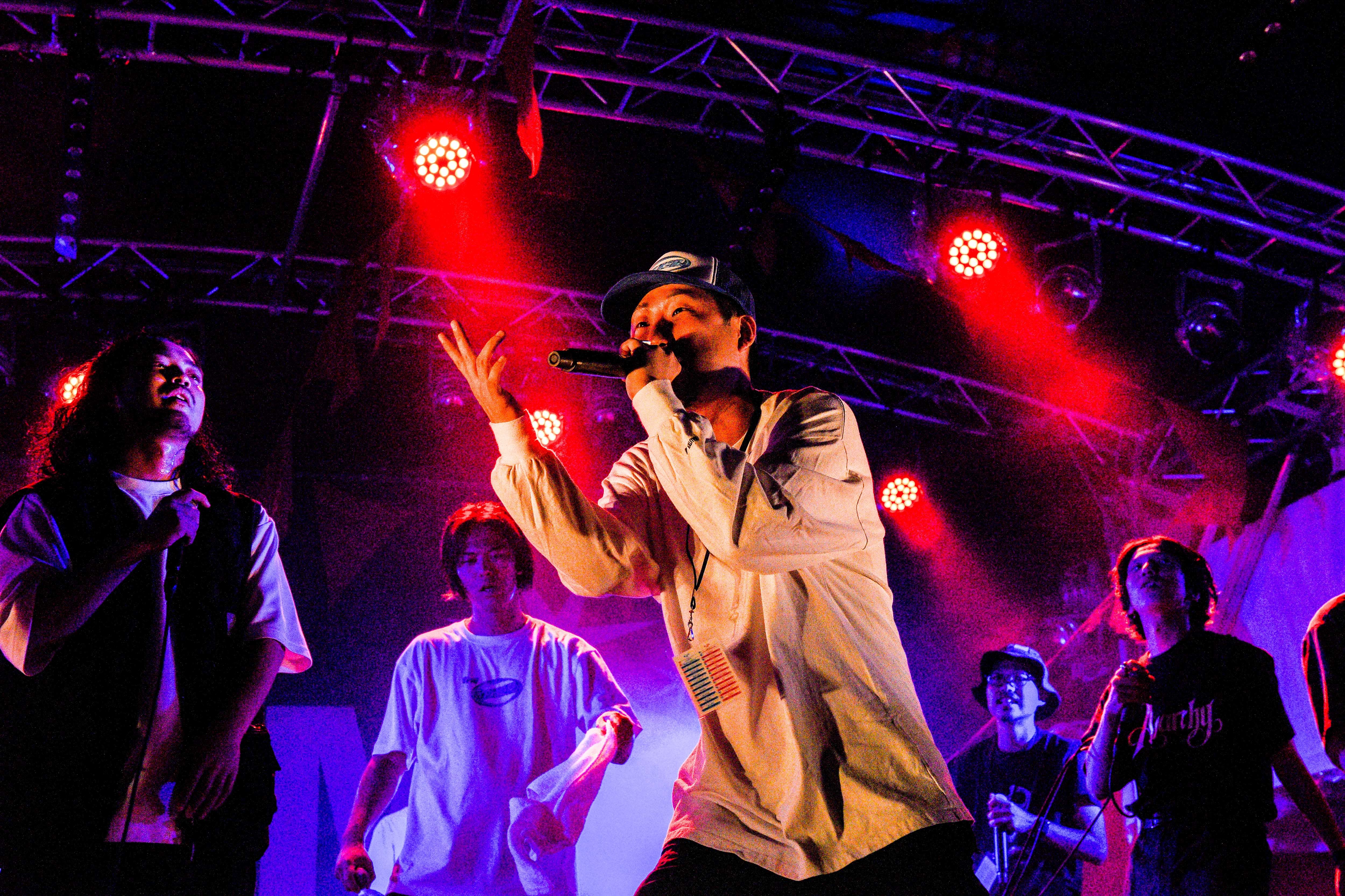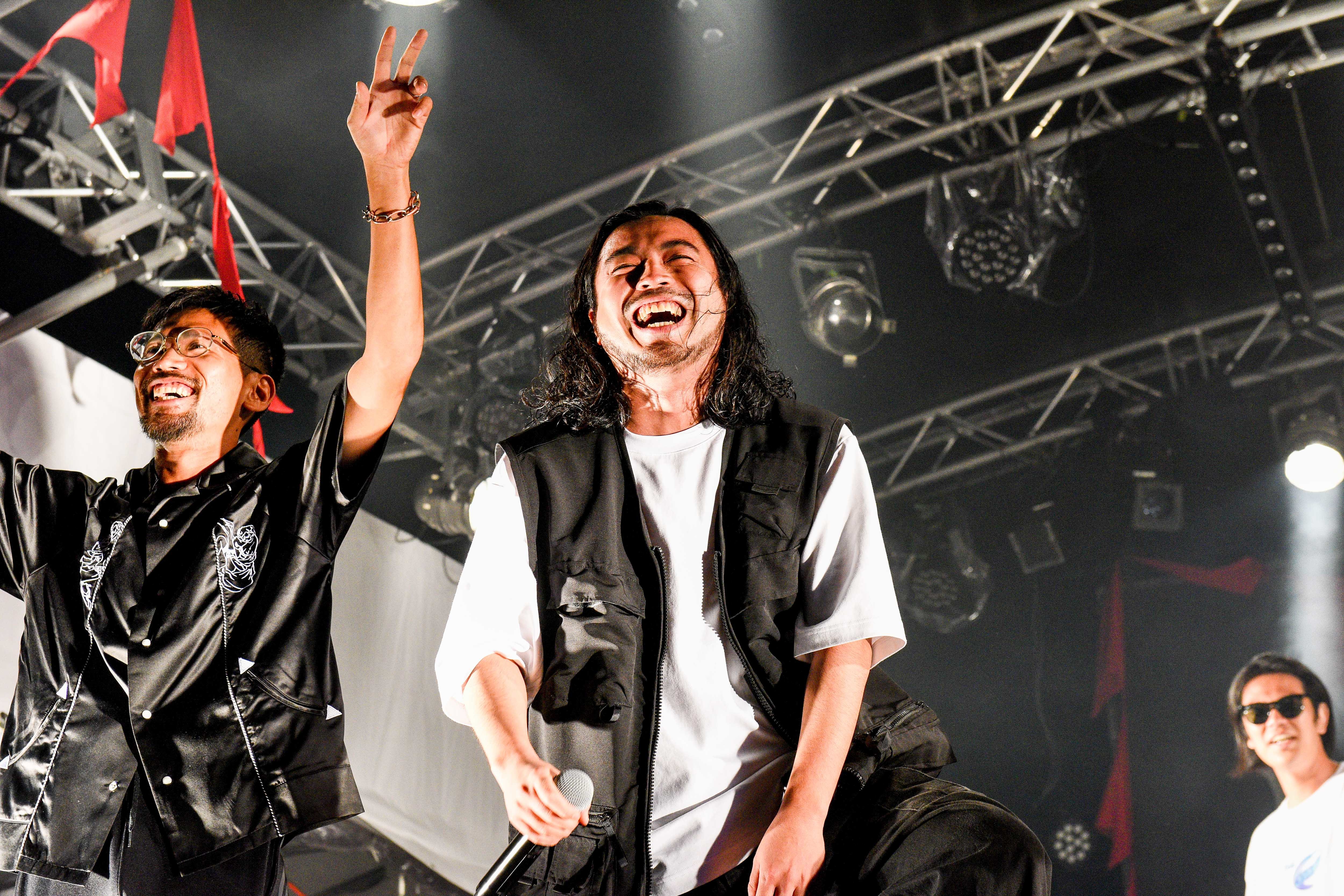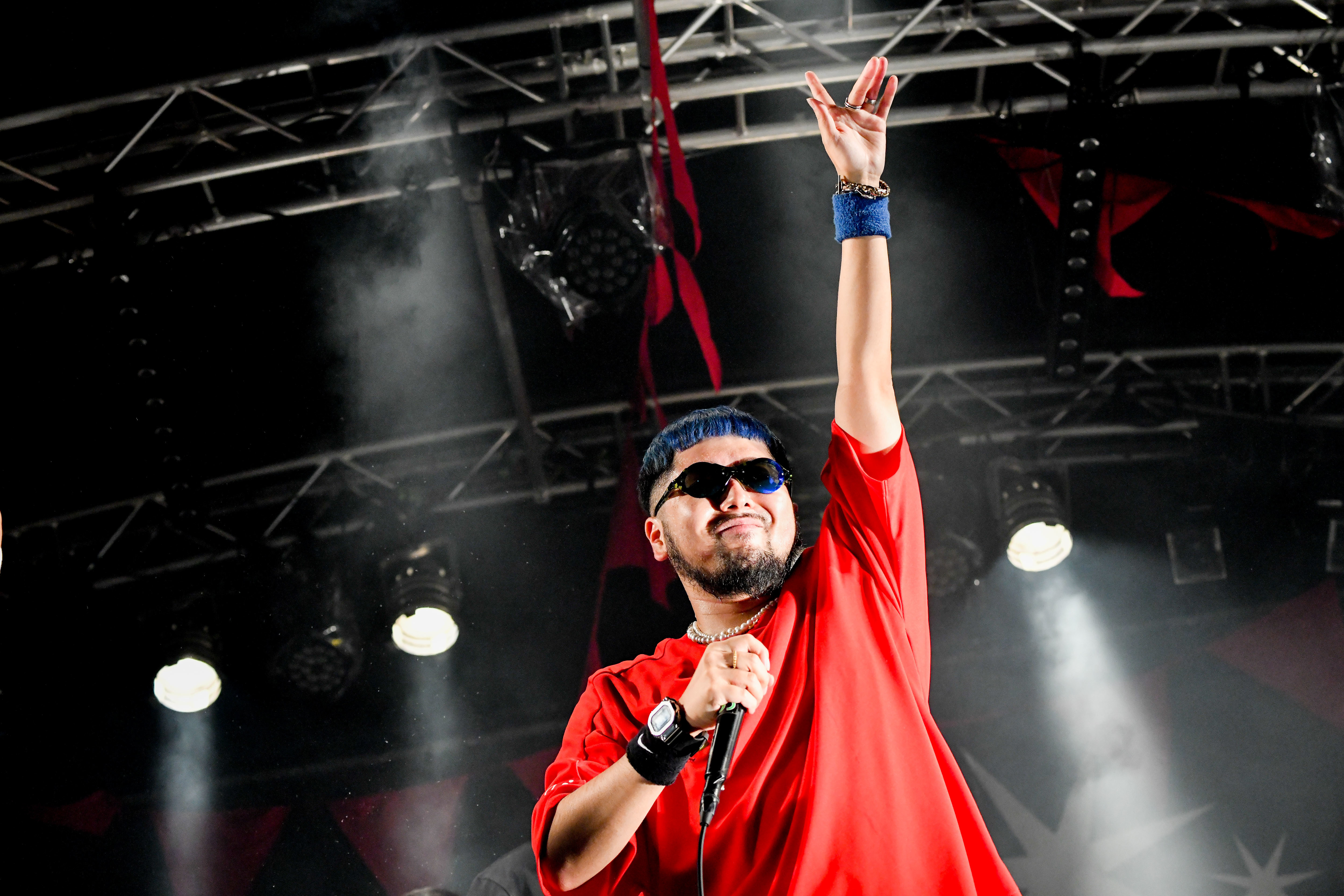 それぞれのキャラをフリースタイルで見せつけると、「マジでハイ」ではご機嫌なサウンドに乗ってリスキーなワードをライミングしていく。クラブではなく野外、しかもロックイベントでヒップホップが豪快に鳴り響く。ジャンルの垣根を越えて、観客が自由に楽しんでいる姿を見て、メンバーもテンションが上がりっぱなしだ。