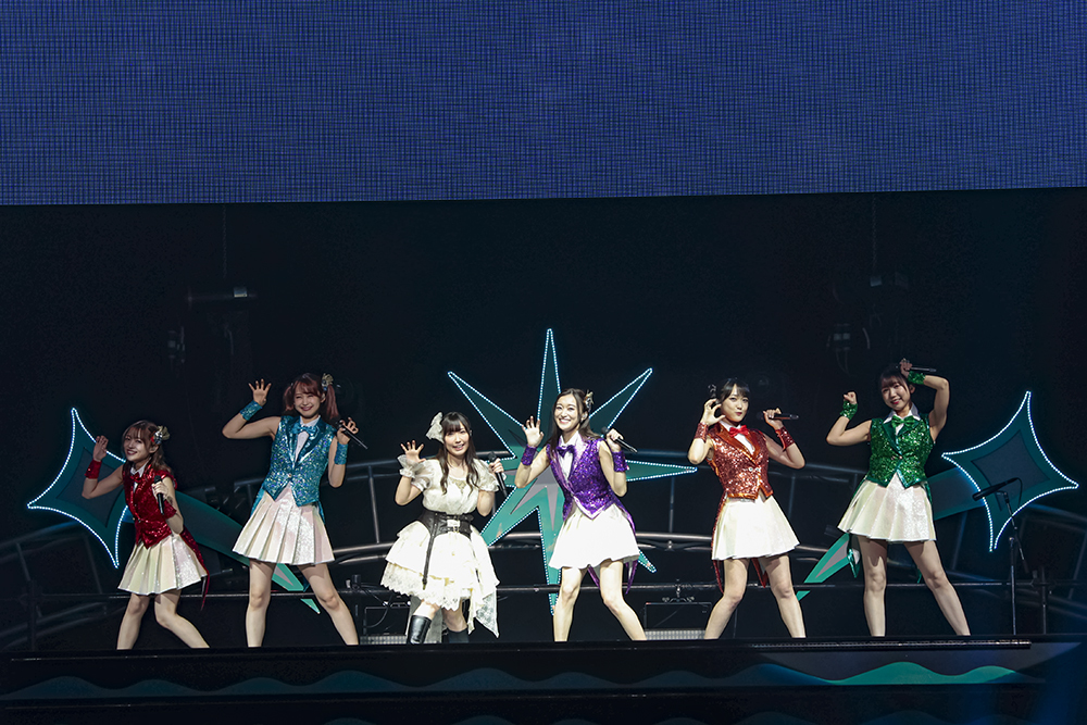 アニサマ初出演となる5人は定番のあいさつと共に、ファンの応援の気持ちがこもった蒼い輝きで満たされた客席の風景に喜びと感謝の言葉を送った。