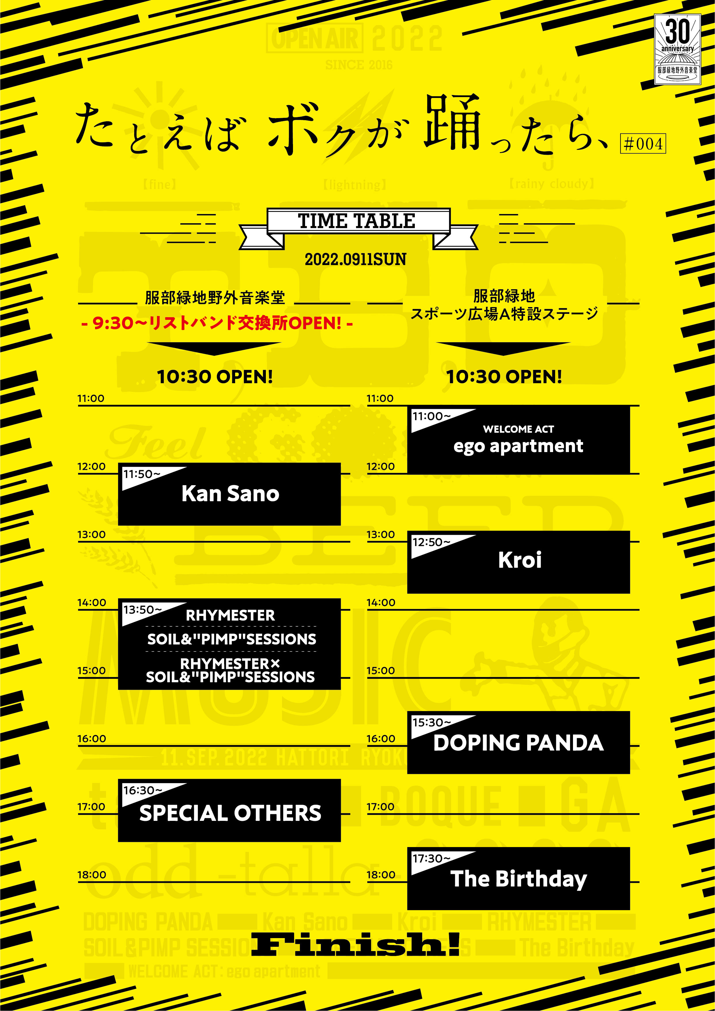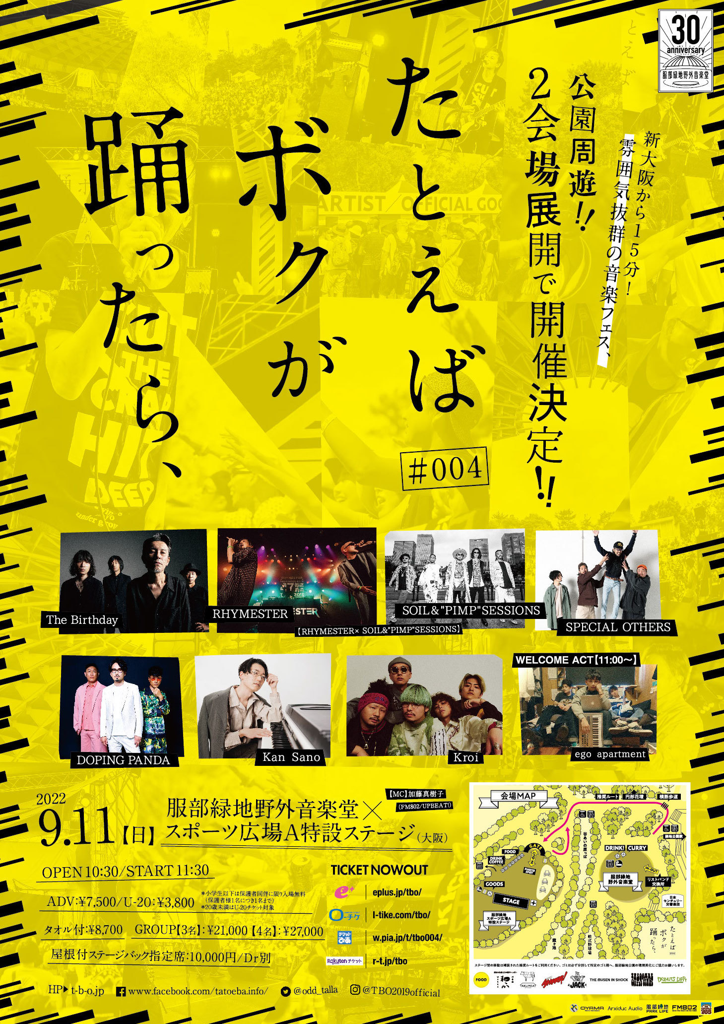 9月11日(日)、大阪・服部緑地野外音楽堂にて開催される、音楽フェス『たとえば ボクが 踊ったら、♯004』のタイムテーブル、エリアマップが発表された。