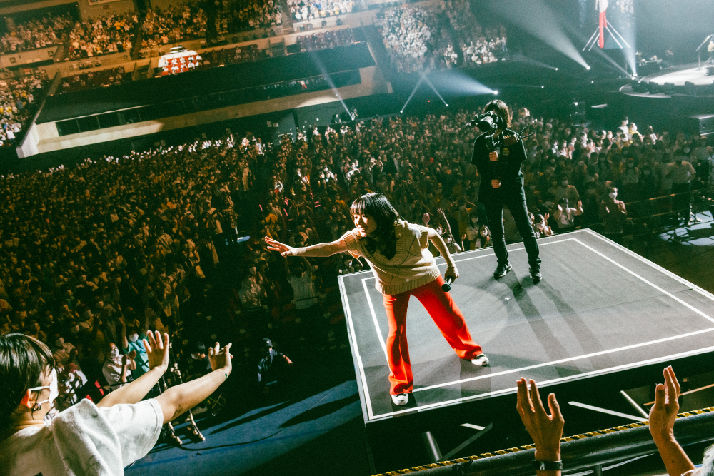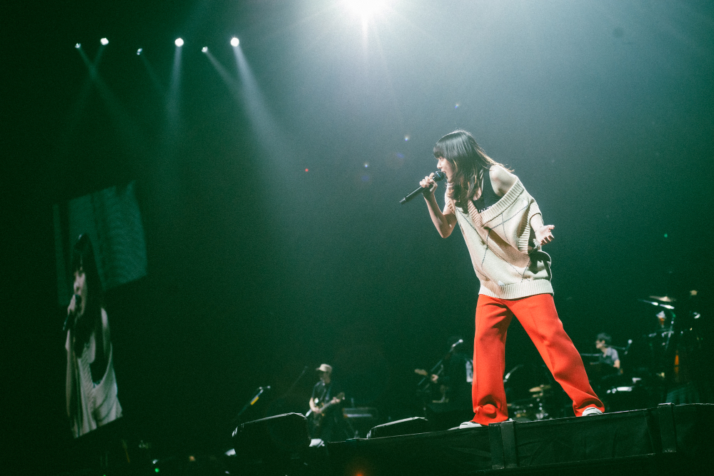 「まだまだ完璧とは言えないですけど、こうやって100%お客さんが入れられるようになって、みんなと熱い空間を過ごせることがホンマに幸せです。でもここに立てるのは絶対に自分の力だけじゃなくて、一緒にライブを作ってくれてるみなさんのおかげやと思ってます」と感謝を伝えると、高ぶった気持ちを一旦クールダウンするかのように「ハート」をしっとりと届けて、重厚なイントロからこの日最後に演奏されたのは〈君も大人になったら恋をするんだよ〉とポジティブなフィーリングを伝える「双葉」。長かったツアーに想いを馳せながらも、最後は笑顔で歌い切った。