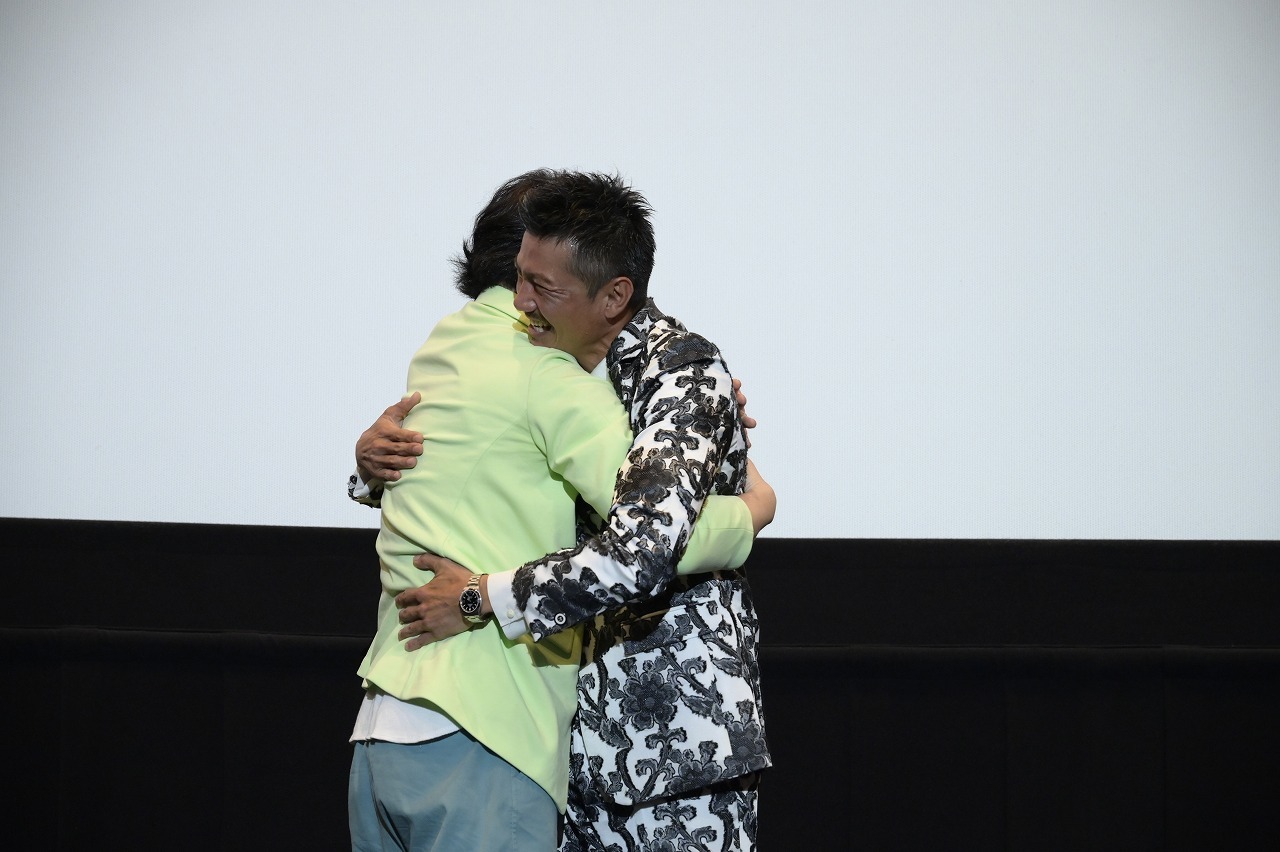 イベントには、スペシャルゲストとして、純烈と6人組ユニット「純烈♨ダチョウ(じゅんれつ おふろ だちょう)」を結成し、「プロポーズ」「白い雲のように」を配信中のダチョウ倶楽部の肥後克広と寺門ジモンが応援ゲストとしてサプライズ登場! 温かい拍手に包まれ満面の笑みを浮かべた肥後は「純烈さんの愛に包まれていますね」と会場を見渡し「ずっと(みなさんの前に)出たかったし、歌いたかったです」とコメント。肥後の「歌いたかった発言」に会場から期待の拍手が沸き起こると「今日は歌えないけれど…、いつか機会があったらぜひ!」と笑顔を浮かべていた。映画監督経験もあるジモンは本作のおすすめポイントを「ジモンポイント」として紹介。「ジモンポイント」は白川の役者魂と酒井のカメラ目線を挙げ「あっという間に終わってしまうくらい楽しめる!」と本作の出来栄えを絶賛していた。ダチョウ倶楽部の二人は、お馴染みの「ヤー!」で純烈ファンの心を掴み、さらに、ジャンプ芸(地面を踏むと周囲の人がジャンプする)では取材に詰めかけたマスコミも巻き込み、会場を笑顔でいっぱいにした。