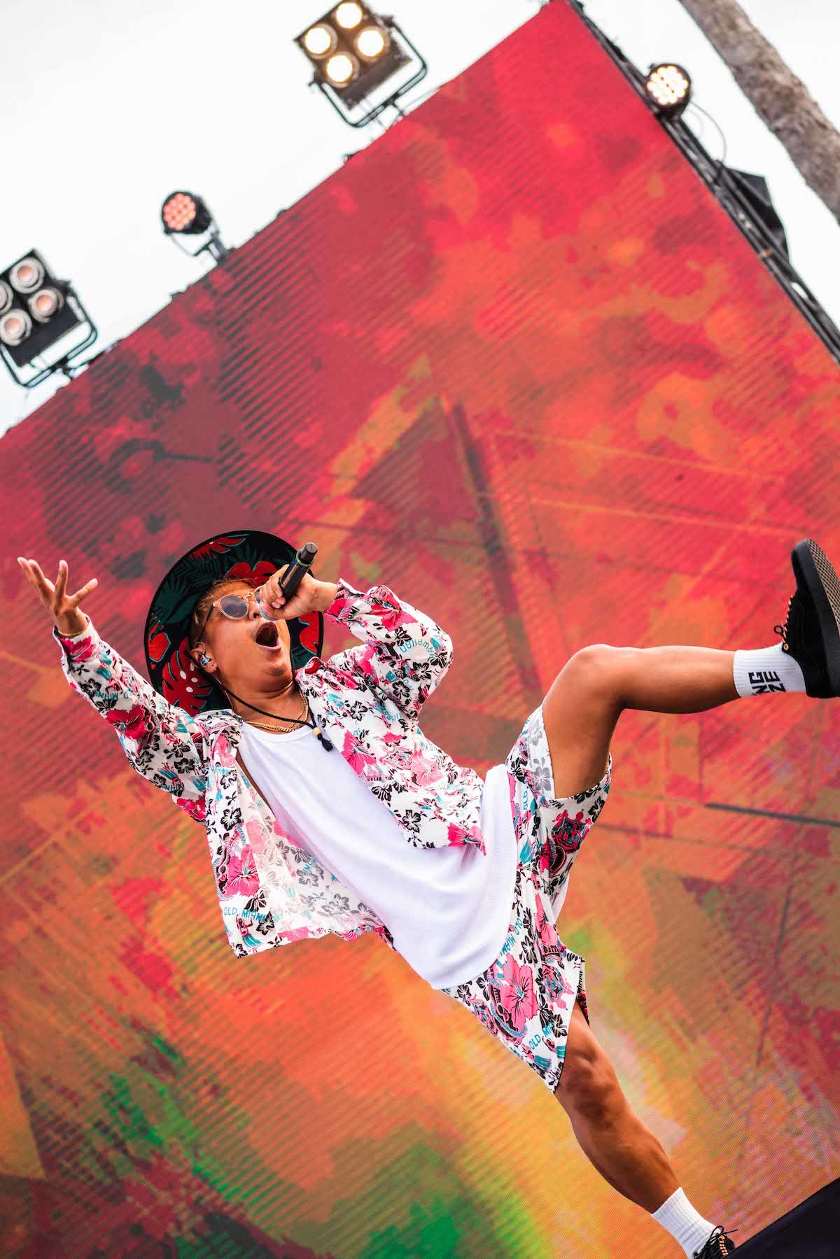 MCでは、リーダーRoverが「暑い中、本当にありがとうございます。暑すぎてやばくなったらすぐ周りのスタッフさんに声かけてくださいね。熱中症や、脱水症状になったら大変ですから。」と飛び跳ねながらライブを楽しんでくれる観客の体調を気遣う。さらに再びドローンの映像が映し出されると「すごい人でしょ!売れてるでしょ!?(笑)」と興奮し、改めて、その人の多さに3人とも目を見張る。フリーライブということもあり、初めてや、久しぶりに足を運んだ人も多い。「無料だから来た人ー?」という質問に手が上がり、めちゃくちゃキレるMOCAに思わず笑いが漏れる。