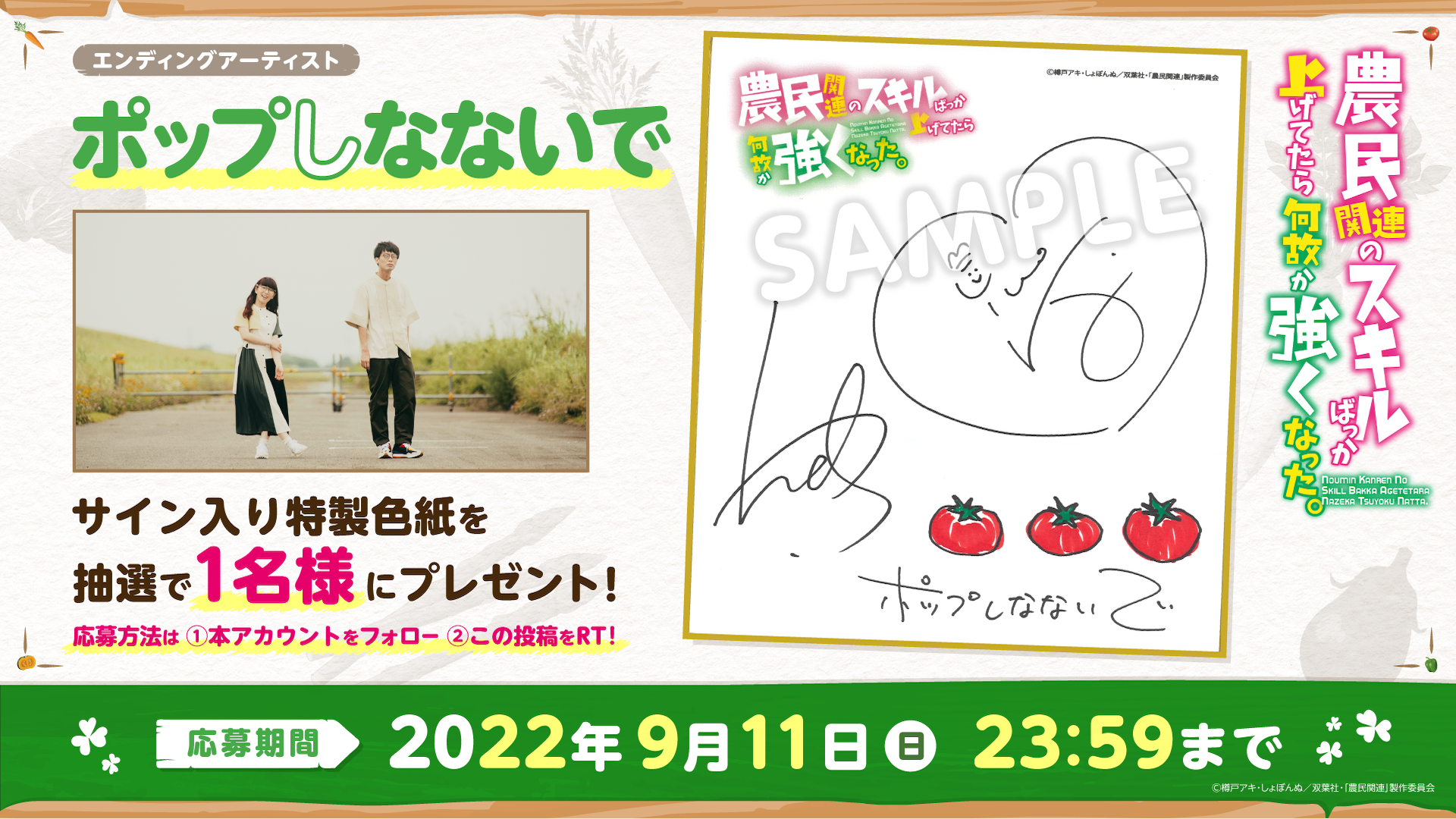 ポップしなないで フォロー&リツイートキャンペーン (C)樽戸アキ・しょぼんぬ/双葉社・「農民関連」製作委員会