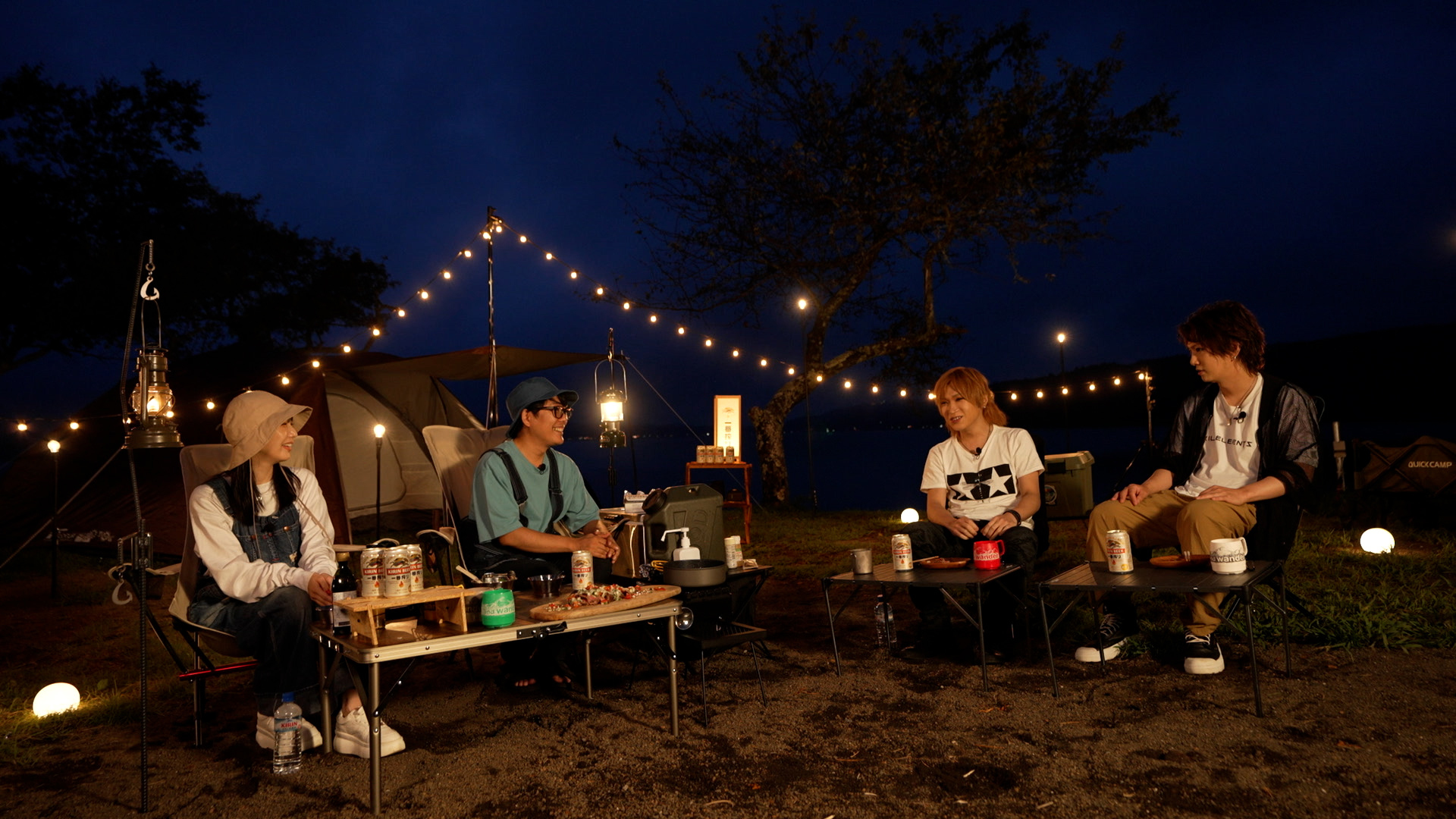 今回の第1回目では、阿諏訪×TOMOMIの作戦会議からスタート。ゲストアーティストのゴールデンボンバーの二人の好みを調査し、最高のキャンププランを考えてゲストをもてなすためのキャンプギアを購入し、キャンプ場へ向かう。