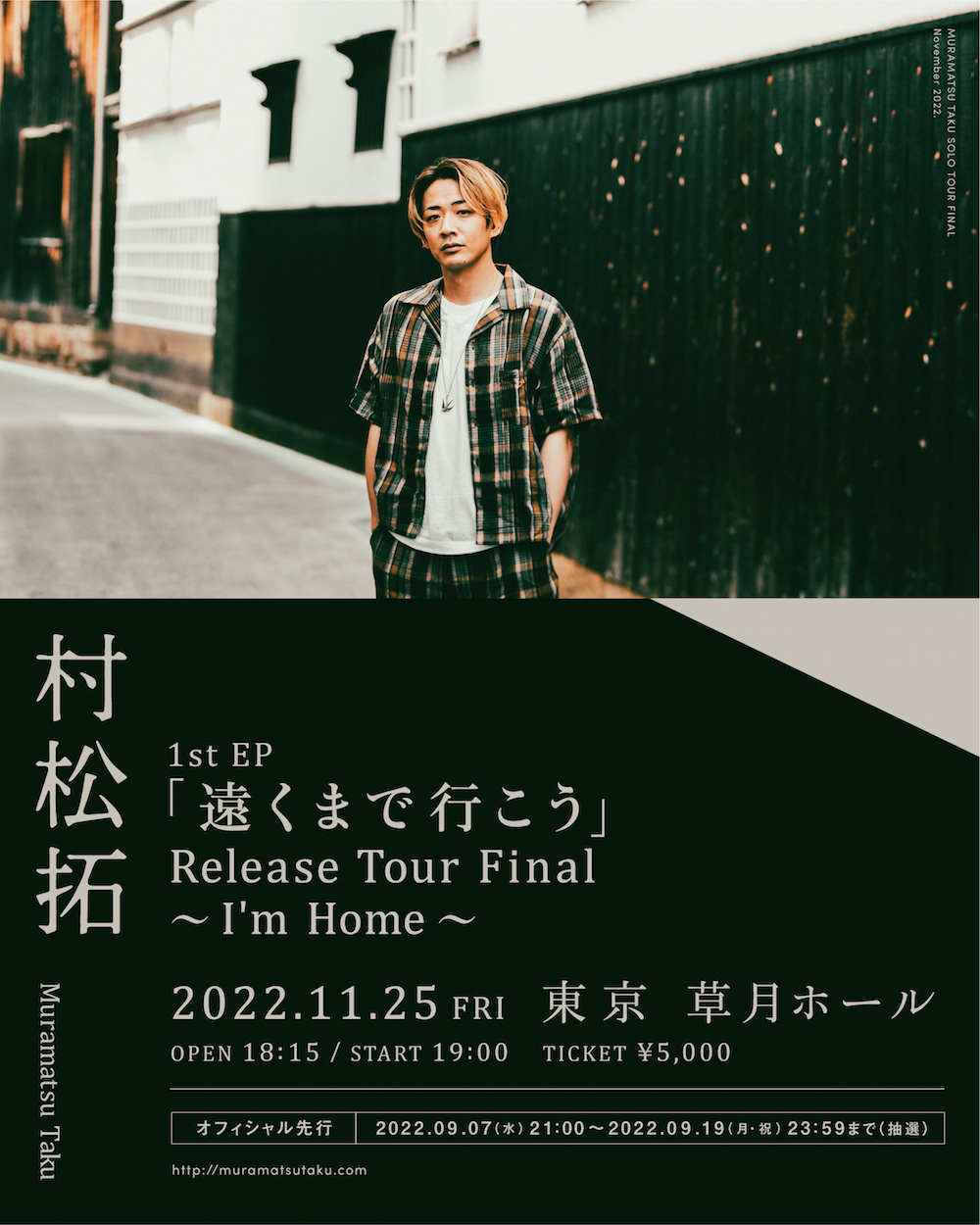 ファイナル公演は、『『遠くまで行こう』Release Tour Final 〜I’m Home〜』と題され、11月25日に赤坂 草月ホールにてワンマンライブとして開催。チケットのオフィシャル先行がスタートしているのでお見逃しなく。また、ツアー各地のチケットも現在一般発売中となっている。