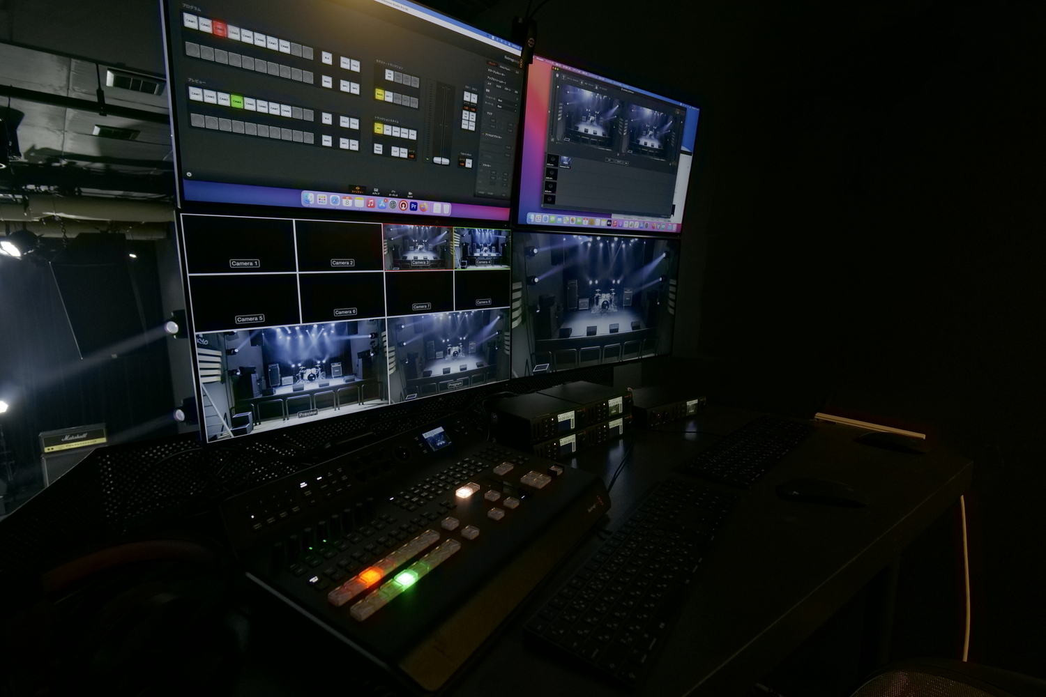 配信機材はBlackmagic Design社のカメラ・スイッチング機器を常備しているほか、⾳響機材は⼤型野外フェスやホールにも使⽤されているスピーカー「Martin Audio」、照明機材は⾰新的なエフェクトや⾼速な動作機能を繰り出す「Robin Spikie」を採⽤し、アグレッシブからドラマチックまで様々なバリエーションの演出に対応でき、⽣演奏はもちろんのこと、⽣配信・ダンス・番組収録、試写会、ウェビナーなど幅広いイベントに利⽤可能だ。