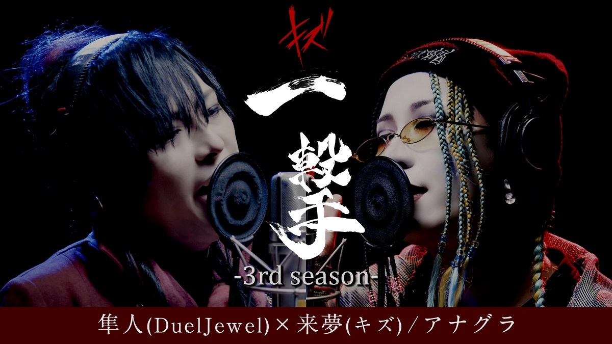 キズの来夢(Vo)がゲストボーカリストを迎え、キズの楽曲をセッションするコラボレーション企画『一撃』-3rd season-の第三弾ゲストに、DuelJewelの隼人を迎えることが発表された。