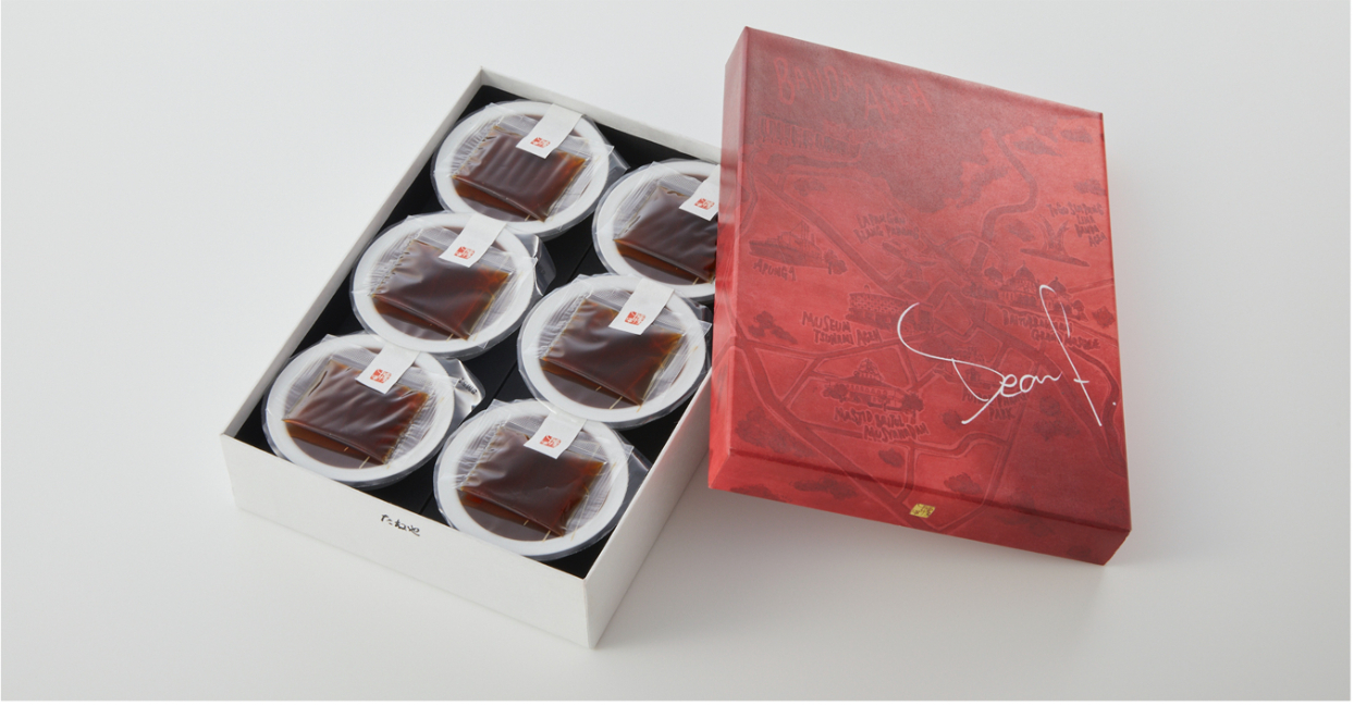 また、“ディーン・フジようかん”を包む外箱には、ディーンがコーヒーに魅了されるキッカケとなったバンダ・アチェ(Banda Aceh)の地図をプリント。バンダ・アチェはディーンが主演の映画『海を駆ける』の撮影地で、ディーンはこの地をきっかけにそれまで嫌いだったコーヒーを好きになったという。
