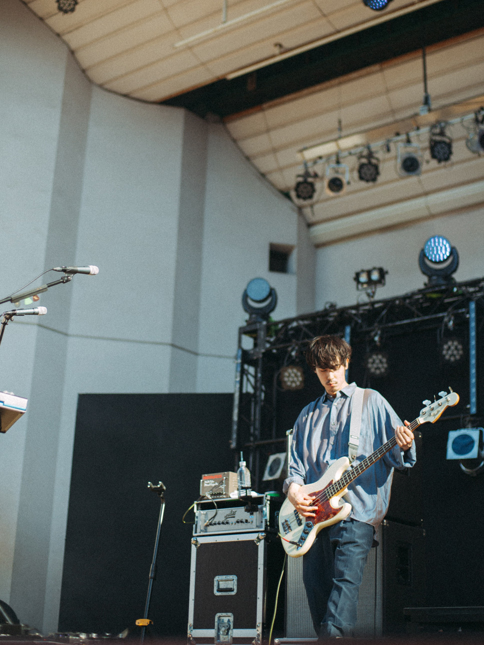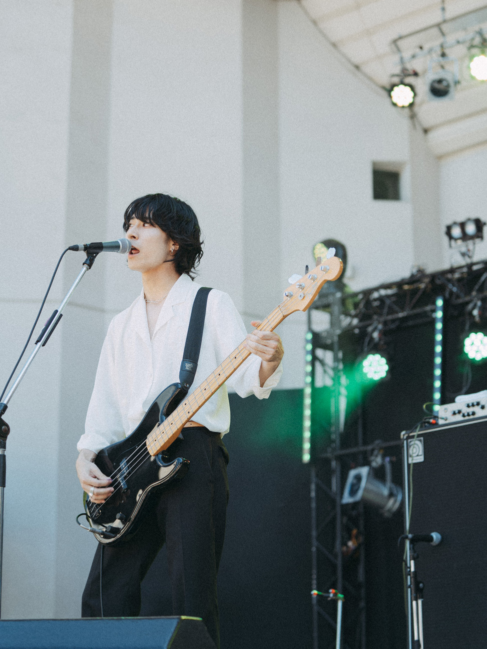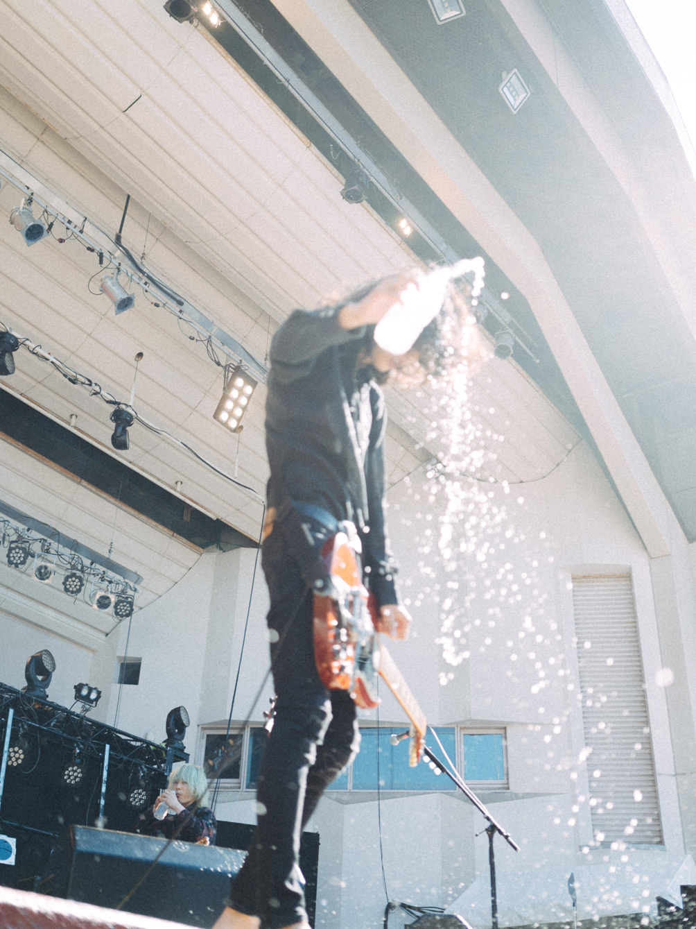 「ここは大好きなライブハウス、セカンドラインの気持ちで!」と、野外の会場をライブハウスに換えてしまおうと、「Ugly」「Letter」でモダンだったり儚さや憂いを表現したりと、これでもかとバンドの魅力を存分に伝えていく4人。「White」では美しい旋律に乗せピュアな恋心を歌えば、会場からは自然と拍手が沸き起こる。ライブハウスで大好きな曲を聴いた時の堪らなく嬉しいあの気持ち、この日は野外の高い空の下でちゃんとそれを受け取れている。