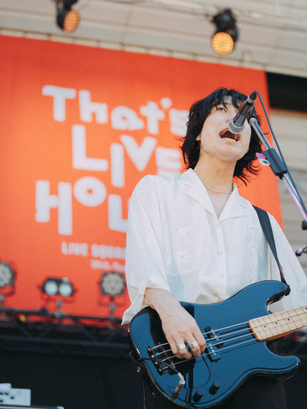「Hurt Me」はMVのオシャレさもさることながら、ライブでのヤマケン(Dr.Cho)のビートがとにかく心地良い。「今日はセカンドラインにずっと前から出演してる、歴史が長いバンドばかりがそろってる。そこに比べる自分たちは弱いと思っていたけど、俺たちがセカンドラインを背負っていく! その軌跡を見てほしい! ここから昇りつめて、大きなステージに向かっていく軌跡を!」と、次世代を担っていく決意を言葉にし「Let Me」でキャッチーなメロのなかに熱い思いを詰め込んでいく。
