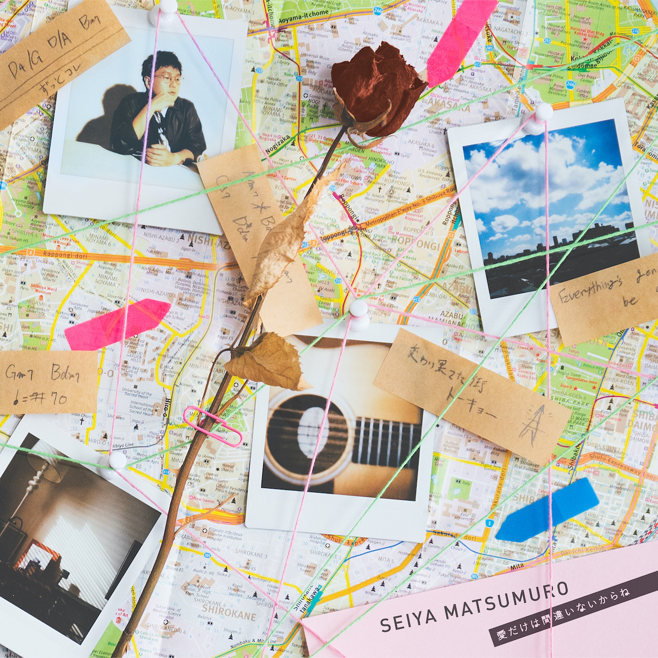 さらに新アーティスト写真とアルバムジャケット写真も公開となった。酒井貴弘が撮り下ろしたアーティスト写真は、光の妙を巧みに利用したい色鮮やかな世界観に佇む松室政哉が印象的な1枚に。そしてジャケット写真は、今作に収録される楽曲の設計図を散りばめたようなデザインとなっている。