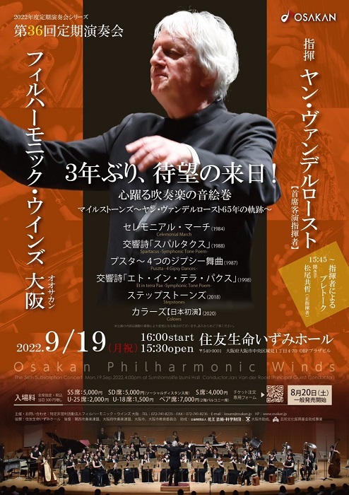 2022年9月19日(月・祝)住友生命いずみホールにて、『フィルハーモニック・ウインズ 大阪 第36回定期演奏会』が開催される。