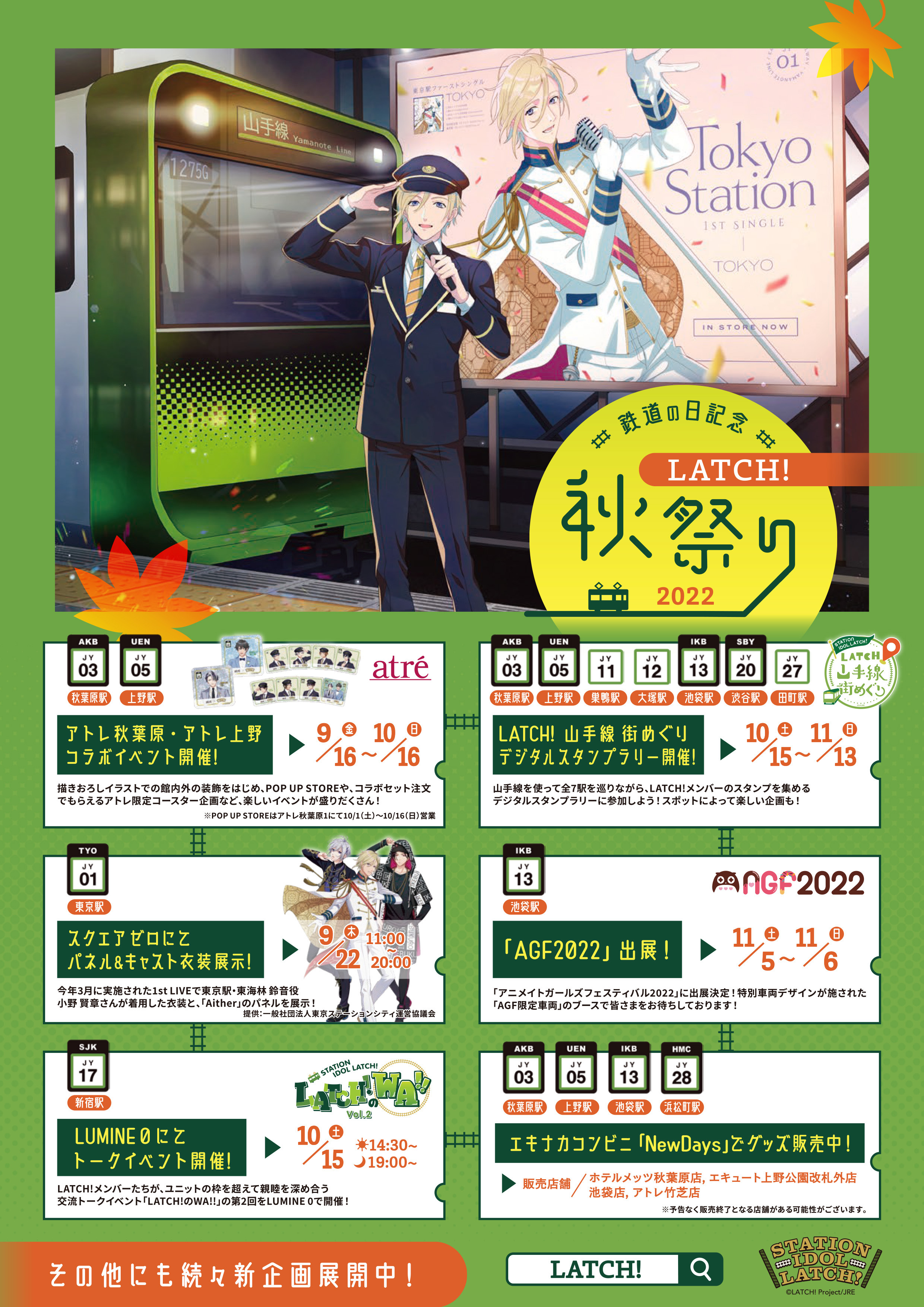 JR山手線・全30駅の個性豊かな駅員キャラクターたちが、彼らの駅や街を盛り上げるべく、業務時間を終えるとアイドルとして活躍する『STATION IDOL LATCH!』。『LATCH!秋祭り』は9 月 16 日を皮切りに数々の企画を展開する。