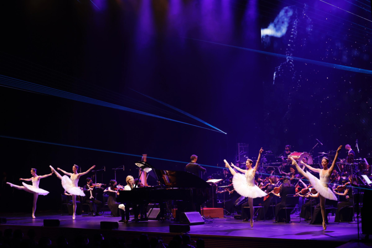 YOSHIKIがフルオーケストラとともに、数々のクラシック楽曲を奏でる本公演では、X JAPANの名曲「Endless Rain」「Tears」「Without You」「ART OF LIFE」などはもちろん、世界的人気アニメ『進撃の巨人 Season 3』のOPテーマ「Red Swan」のボーカル入りバージョンや、日本ゴールドディスク大賞を受賞したSixTONESへの提供曲「Imitation Rain」のクラシカルバージョンなど、さらにショパンやベートーヴェン、チャイコフスキーといったクラシックの名曲も含め、豪華な楽曲を次々と披露。繊細かつ荘厳なピアノの音色で美しいメロディーを奏でた。