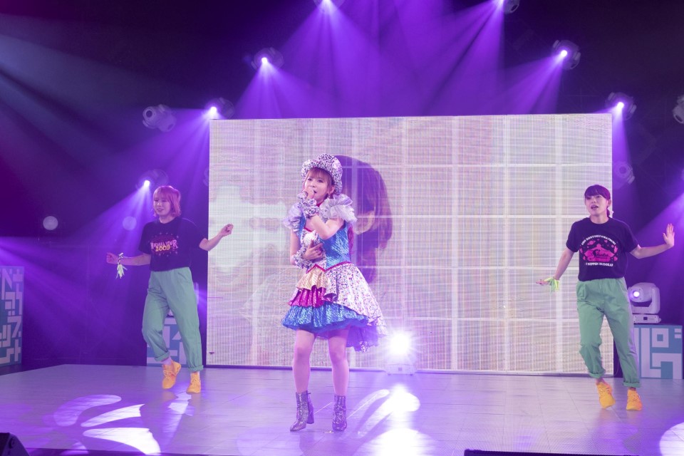 続けて「家族で親友である愛猫のマミタスとの突然の別れ」を描いたピアノバラード「愛してる」で、天にも届くファルセットを響かせ、TVアニメ「ゾイドワイルド」のエンディングテーマ「blue moon」、アニメ「ハクション大魔王2020」エンディングテーマ「フレフレ」では、「子供たちの笑顔に繋がったらいいな」という想いを込めて歌い踊った。最後は「自己肯定感があがるトリガーになった大切な曲です」と語り、自身も女王役で出演したアニメーション映画『しまじろうとキラキラおうこくのおうじさま』の主題歌としてプライベートでも親交のあるヒャダイン(前山田健一)が提供した「君のまんまが いんだよ」で歴代シングルをすべて歌い上げた。