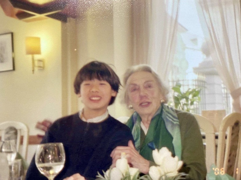 小学校6年の時の松本宗利音。シューリヒトの奥様マルタさんと 写真提供:松本宗利音