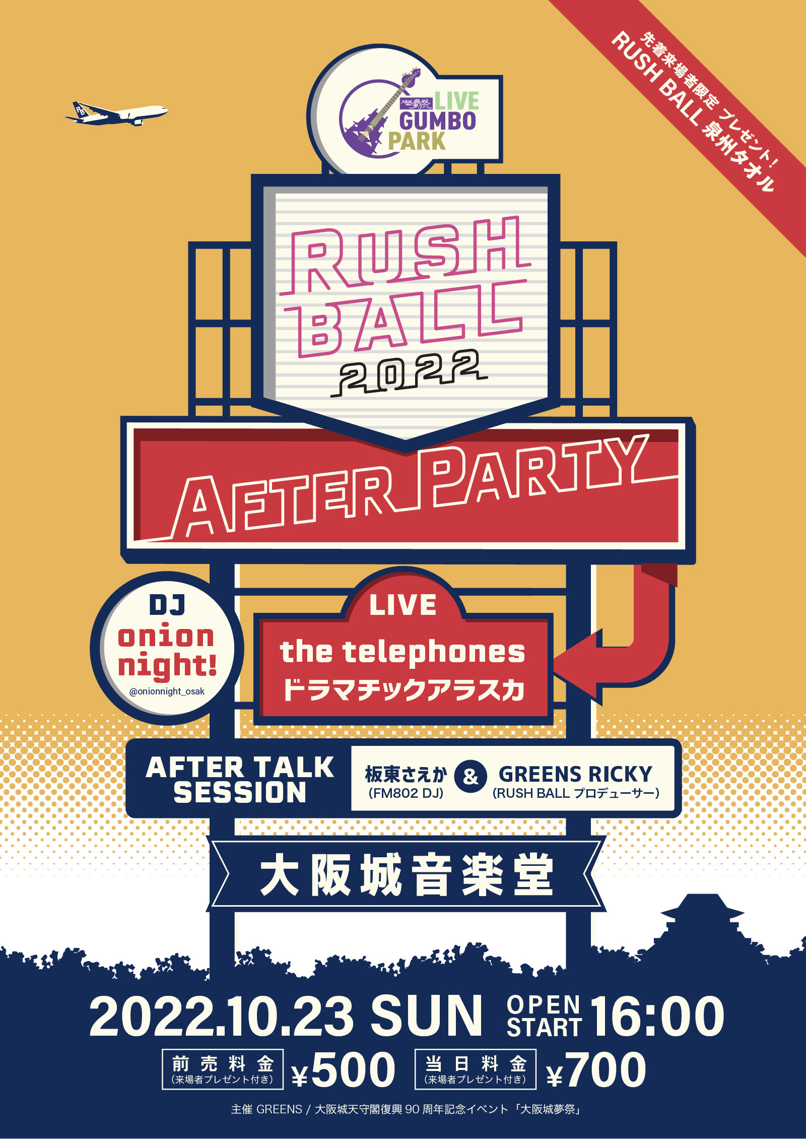 8月27日・28日に大阪 泉大津フェニックスにて今年も開催された『RUSH BALL』の余韻をみんなで楽しむイベント『RUSH BALL 2022 AFTER PARTY!!』が開催決定した。