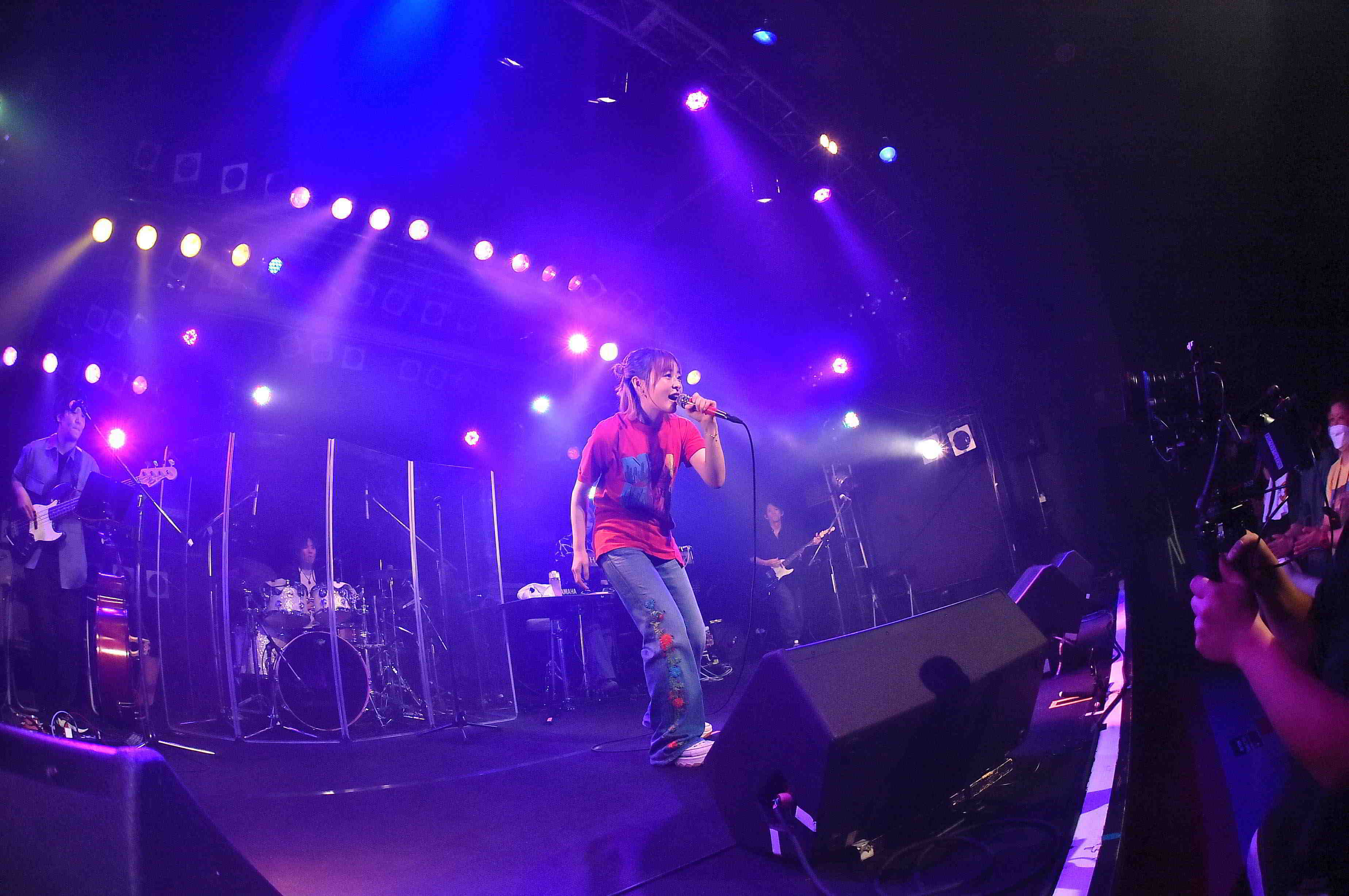 そんな森七菜は満員の観客を前に、名刺代わりの1曲であり今の彼女を象徴する代表曲「スマイル」のほか、ライブの中でも異彩を放つAyase作詞・作曲の「深海」など個性的なオリジナル曲の数々、このライブのために用意されたカバー曲など全14曲をバンド編成で披露。彼女のハツラツとしたボーカルと変幻自在なバンドアンサンブルの相性も抜群で、ライブハウスという場ならではの一体感も生まれ、観る者を魅了し続けた。