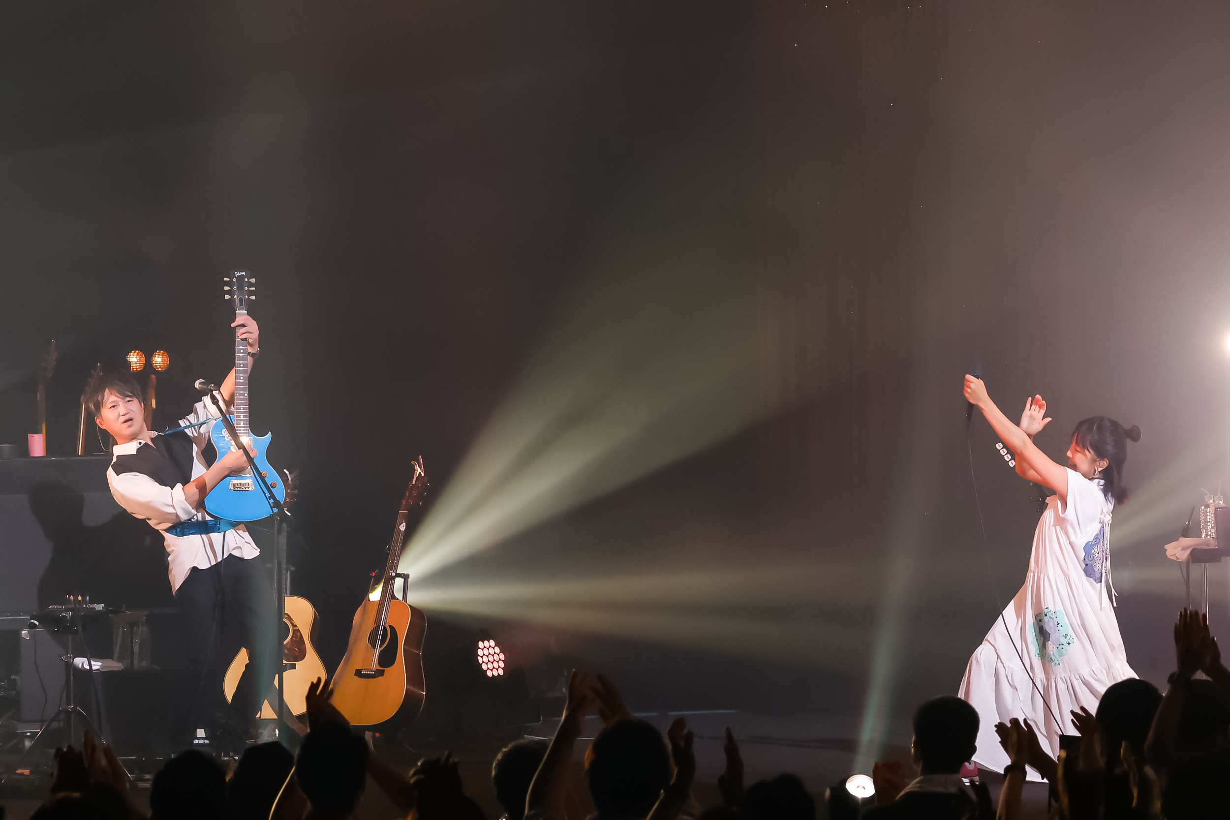 ギターを下ろし、特徴的なイントロから始まる「神無-KANNA-」を続ける。映画『神在月のこども』の主題歌として、昨年リリースながら今年フランスやロサンゼルスでの体験をさせてくれた大事な縁をもたらしてくれた楽曲だ。