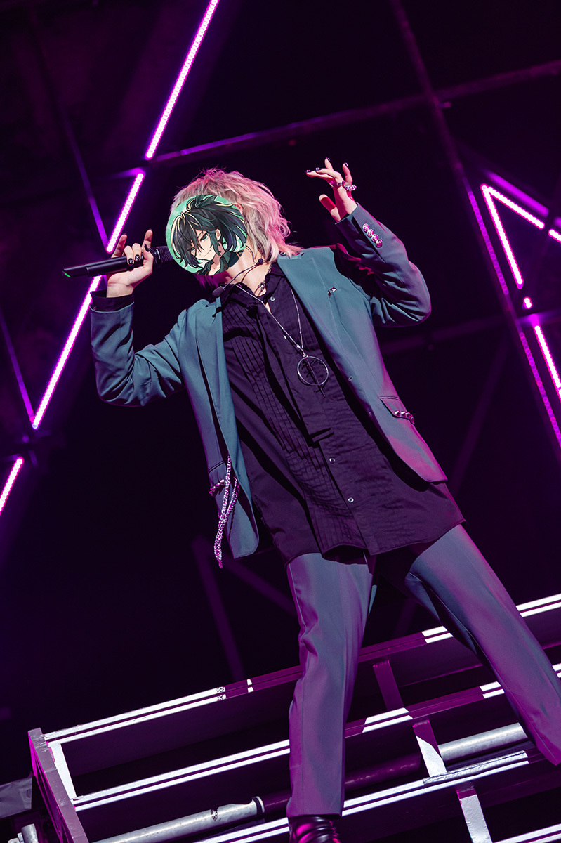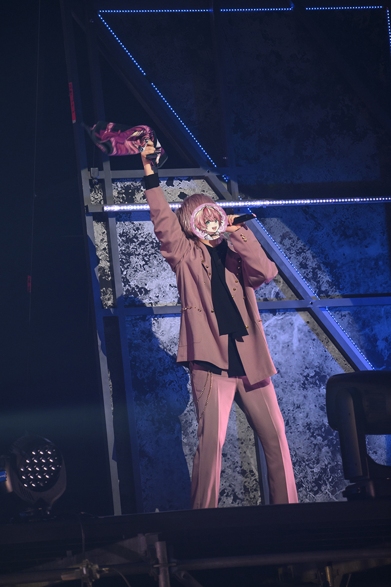 「今からトロッコでみなさんのところへ行きます!」と告げ、5人が個別トロッコでアリーナ通路へと向かい、4階層の客席隅々までたっぷりとファンサした「Sweet Trap」。アリーナ通路にとどまったトロッコで、5人のエースたちが<俺たちがOnly1><俺たちが“Knight A”>とであることを堂々示した、ばぁう作詞の「V Ace」。<受け継いだバイオレット>というフレーズもライブでよりいっそう胸にぐっとくるし、<騎士A>というコールでリスナーとの一体感もどんどん増していく。