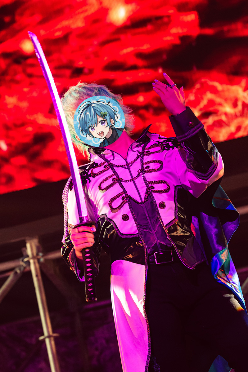 刀を手に凜々しく勇ましく舞いながら歌ったのは、<騎士道>を掲げ突き進んでいく覚悟に満ちた、そうま作詞の「真世界」。流れるような太刀さばき、腕を使った血払いの仕草も堂に入っていて、それらの技を短期間でどうやって習得したのか本当に驚きだ。