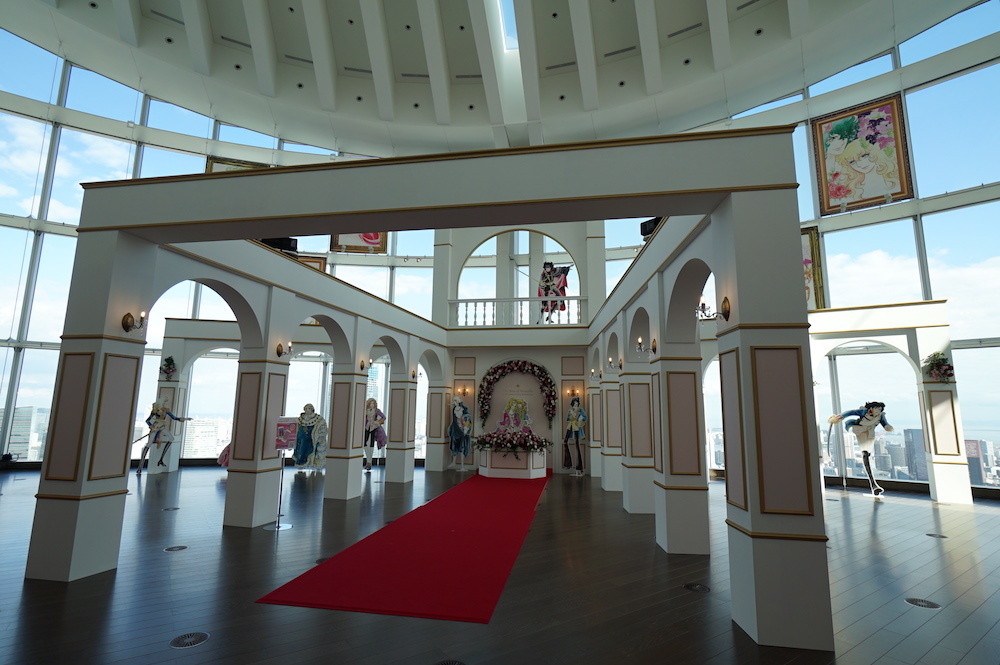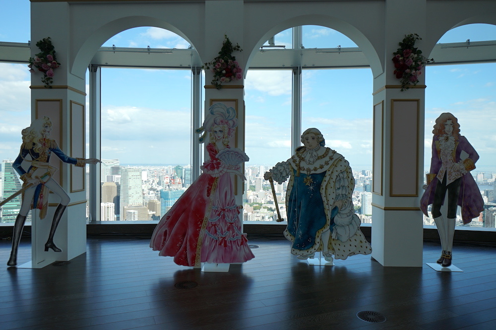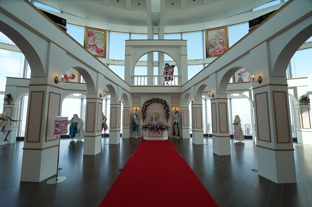 まずなんと言ってもインパクトがあるのは、【序章「ベルサイユのばら」誕生】に設えられた宮殿風のフォトスポットだ。バックに広がる六本木の空が眩しい。