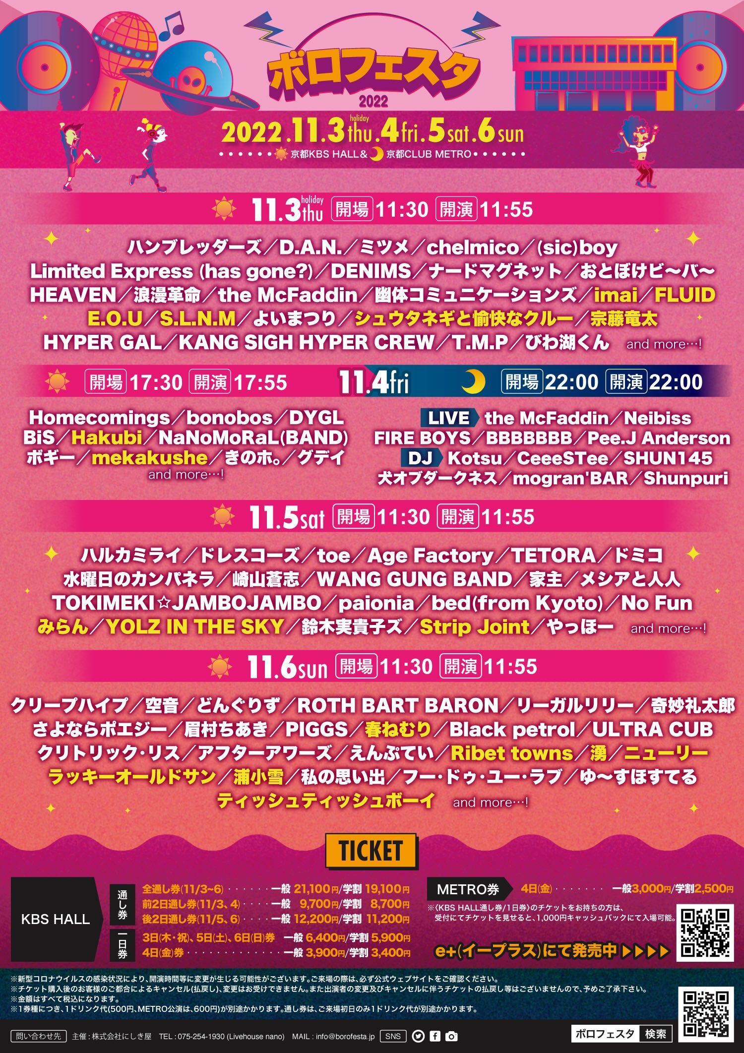 京都の音楽フェス・ボロフェスタが、『ボロフェスタ2022』の第5弾出演アーティストを発表いたします。
