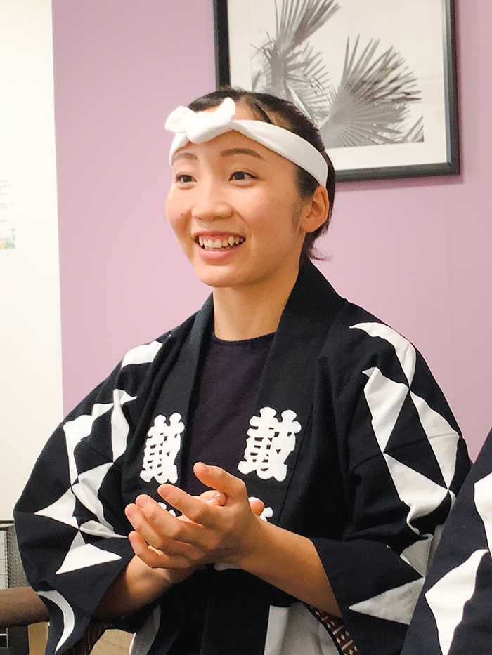 米山水木(以下、米山):私はメンバー7年目の米山水木と申します。主に舞台では太鼓を叩いています。私は地元で2歳の頃から和太鼓を始めていて、鼓童に入ったきっかけは小学生のときに鼓童の舞台を見たことでした。今はもういらっしゃらないんですけど、ある女性プレイヤーに憧れて、その方と同じ舞台に立ちたいと思い、鼓童に入りました。