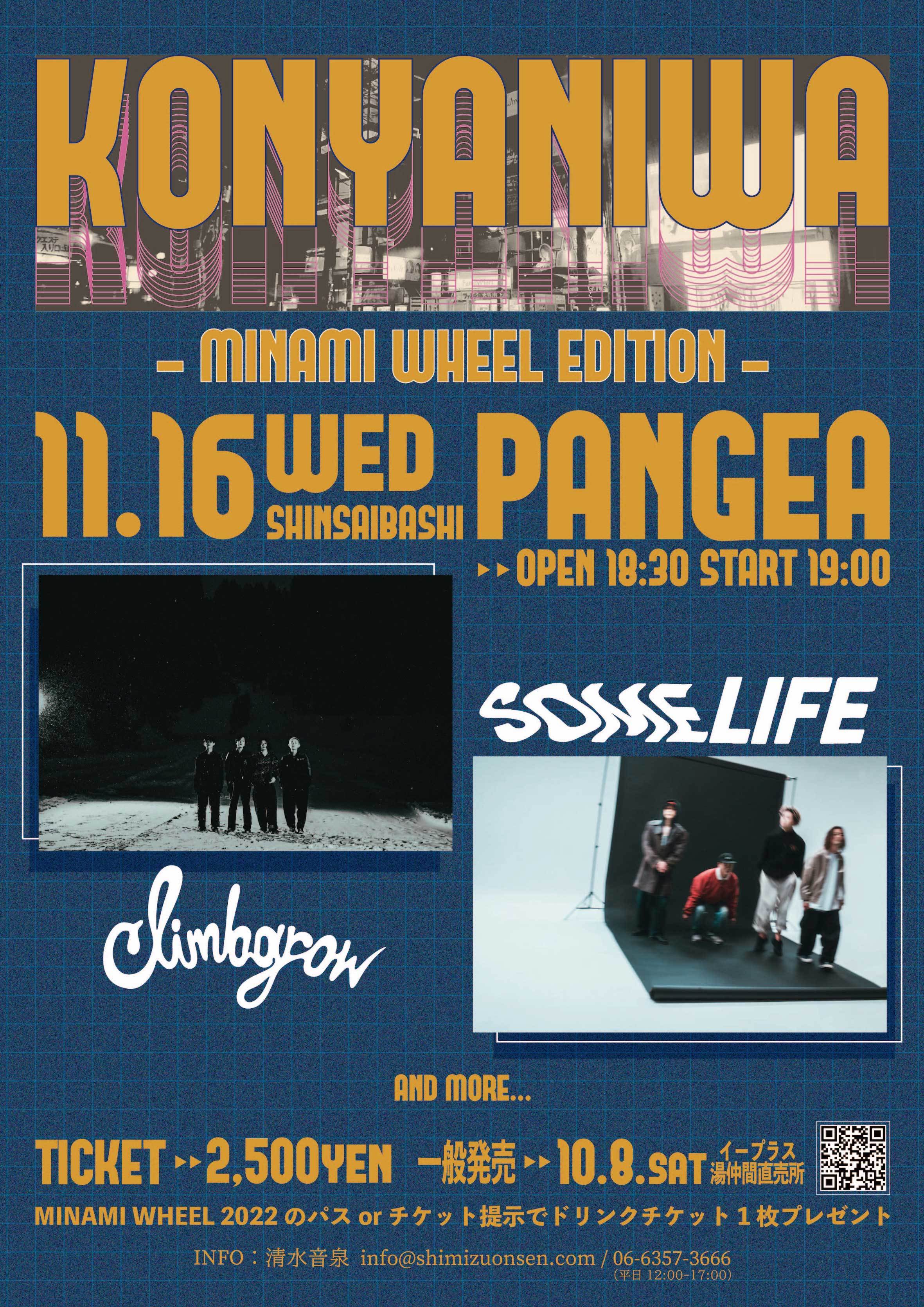 11月16日(水)に心斎橋Pangeaにて清水音泉が主催するライブイベント『KONYANIWA – MINAMI WHEEL EDITION – 』が開催される。