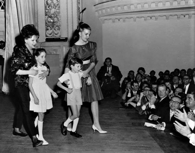 母ガーランドのカーネギー・ホールでのコンサート(1961年)のラストで、ステージに登場した15歳のライザ・ミネリ(右端) Photo Courtesy of Scott Brogan