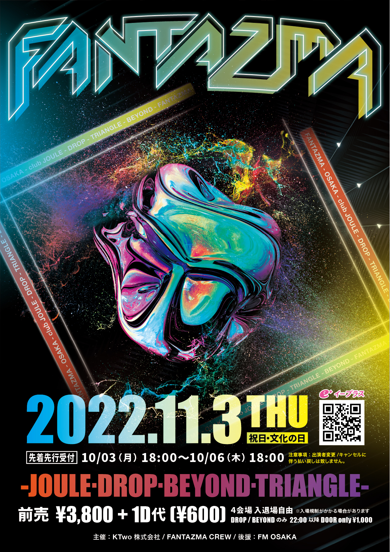 『FANTAZMA』は2011年に始動、今回約10年の時を経て復活したサーキットイベントとなっている。ファッション・FOOD・アートと様々なカルチャーに溢れる街であるアメリカ村の中心部に位置するライブハウス&クラブ4会場(club JOULE・アメリカ村 DROP・アメリカ村 BEYOND・TRIANGLE)にて、11月3日に開催される。