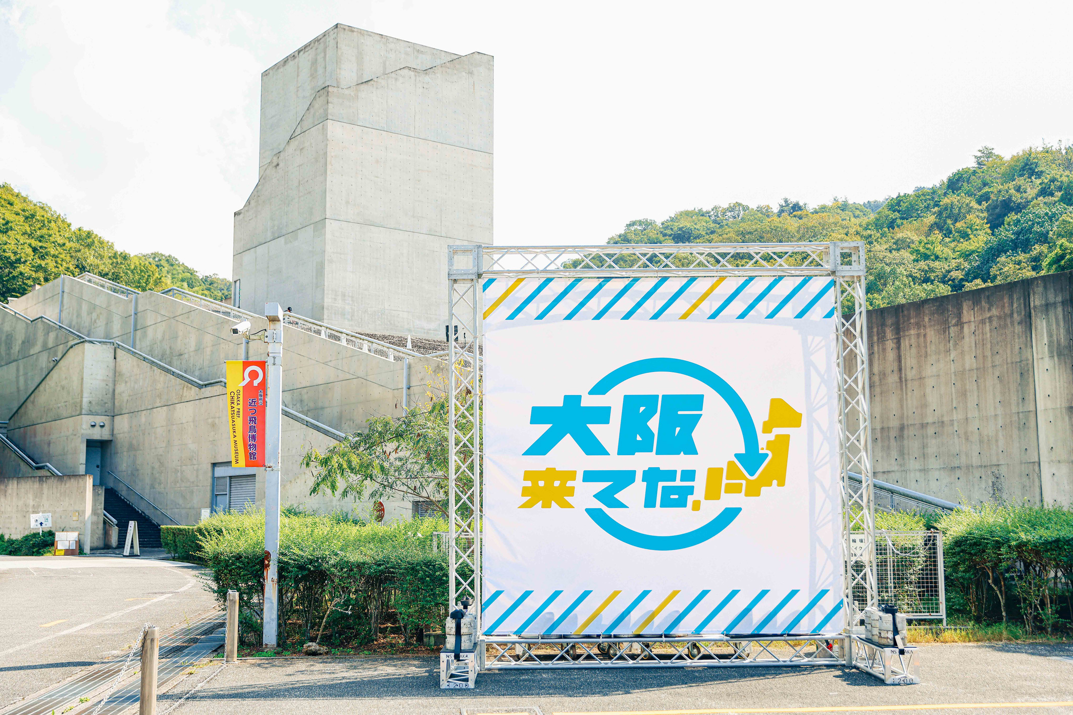 今回の会場「近つ飛鳥博物館」は、大阪と奈良の県境にほど近い南河内郡にあり、大阪市内から電車で約30分、最寄駅の喜志駅・富田林駅からバスで約15分のところに立地する。712年に口述筆記された「古事記」に記載されている、「近つ飛鳥」と名付たこの地域には、4基の天皇陵を筆頭に聖徳太子墓など数百基の古墳が造られた古墳時代から飛鳥時代の「王陵の谷」とも言われる。