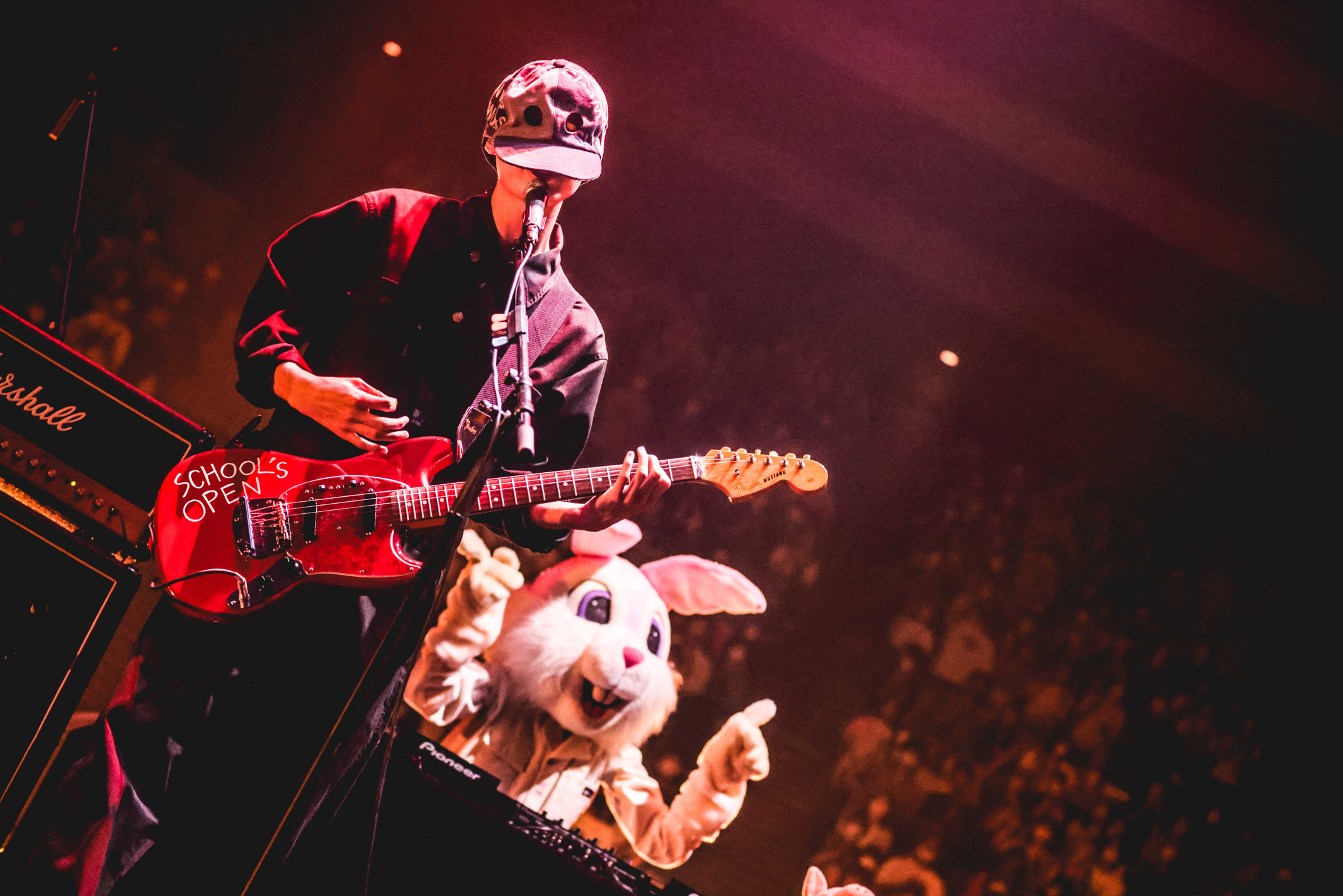2番手は、作詞・作曲・編曲、アートワークや映像に至るまで、すべてをセルフプロデュースする新世代のソロアーティストWurtS(ワーツ)。おそらく、この日の出演者の中で、はじめてライブを観るお客さんが一番多かったのは彼だろう。打ち込みのビートとともにMVでもおなじみのウサギさん(DJ)が盛り上げ、サポートメンバーに続き、キャップを深くかぶったミステリアスな姿の本人が登場。物憂げなメロディーのダンスナンバー「Talking Box(Dirty Pop Remix)」へ続ける流れは、「どれだけ躍らせてくれる?」という会場の期待感に応えるかようなワクワクするオープニングだった。