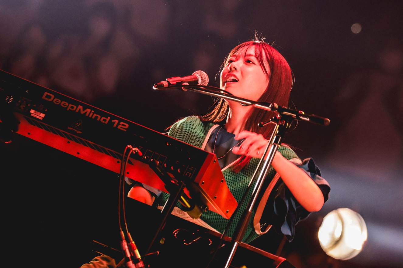 そこからは、打って変わって「ふたり計画」「僕の個人主義」のエモくダイナミックなサウンドを展開し、ラップを織り交ぜたエレクトロポップな「BOY MEETS GIRL」で緩める―そんな変幻自在なステージングは、自身の肩書を「研究者×音楽家」と公言する彼の楽曲の振れ幅を感じさせた。ほぼMCはなく、キャップで顔は見えないがハンドマイクでフットワーク軽く煽る場面も。謎に包まれた存在でありながら、どこか懐かしさも感じる耳なじみの良いサウンドでジャンルやジェネレーションを越えていく。そんな彼の存在を強く印象付けたステージとなった。