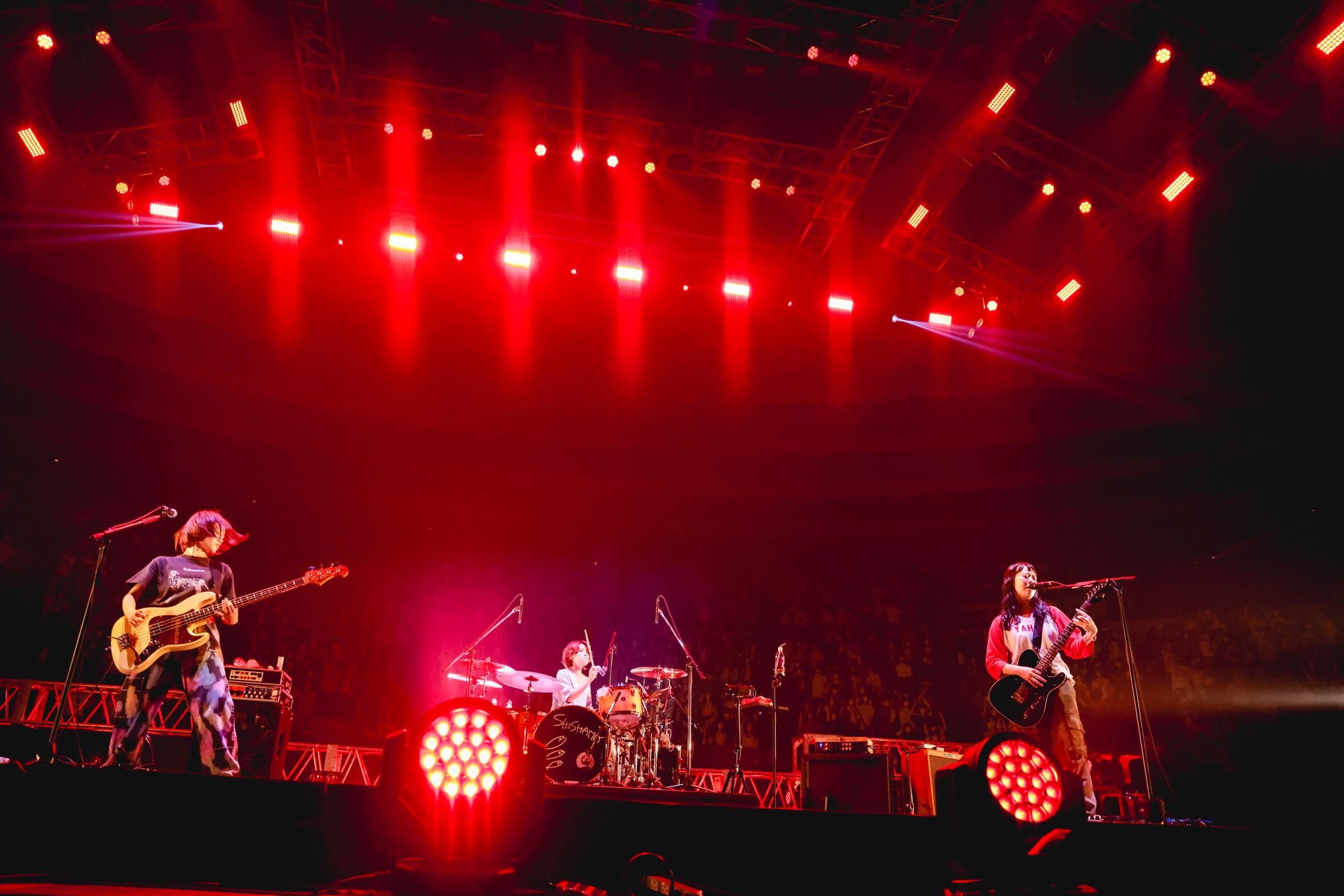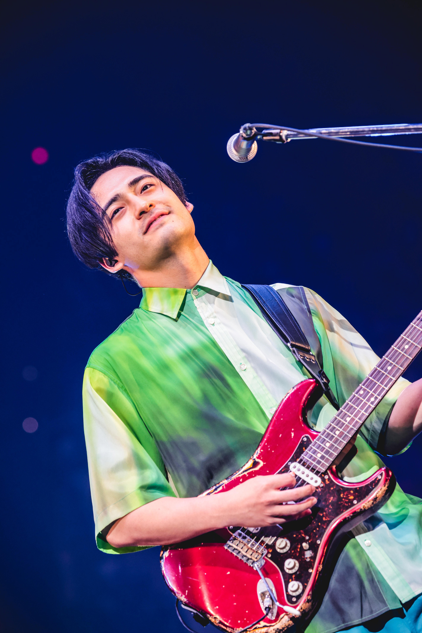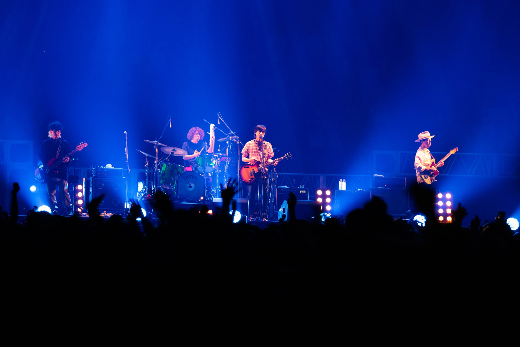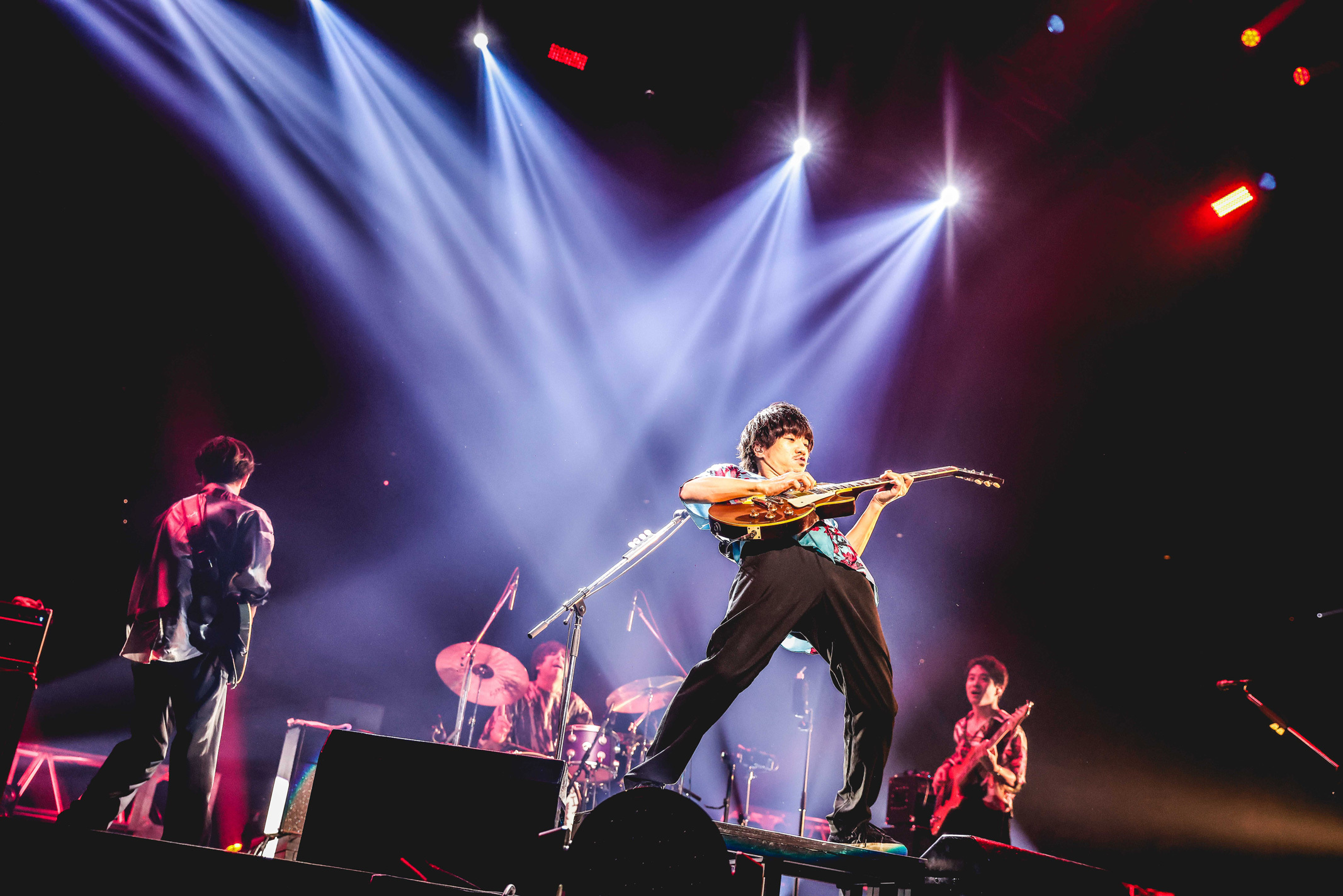 伸びやかなヴォーカルがファルセットとともに会場後方まで届き、みんなの心をじんわりと満たしていくようすには貫禄も漂っていた。「FM802はコロナ禍を経て、バンドやライブを盛り上げてくれる存在です。今日もそんなふうに前進できる1日になればいいなと思います」と、MCで決意と感謝の想いを伝えたせと。そんな言葉通り、しっかりと歩みを進めるかようなサウンドを響かせた「BLUE」、太陽のようなオレンジの照明が包む中、未来を見つめる歌詞が爽快なナンバー「メトロノウム」で意志の強いバンドサウンドを響かせた。