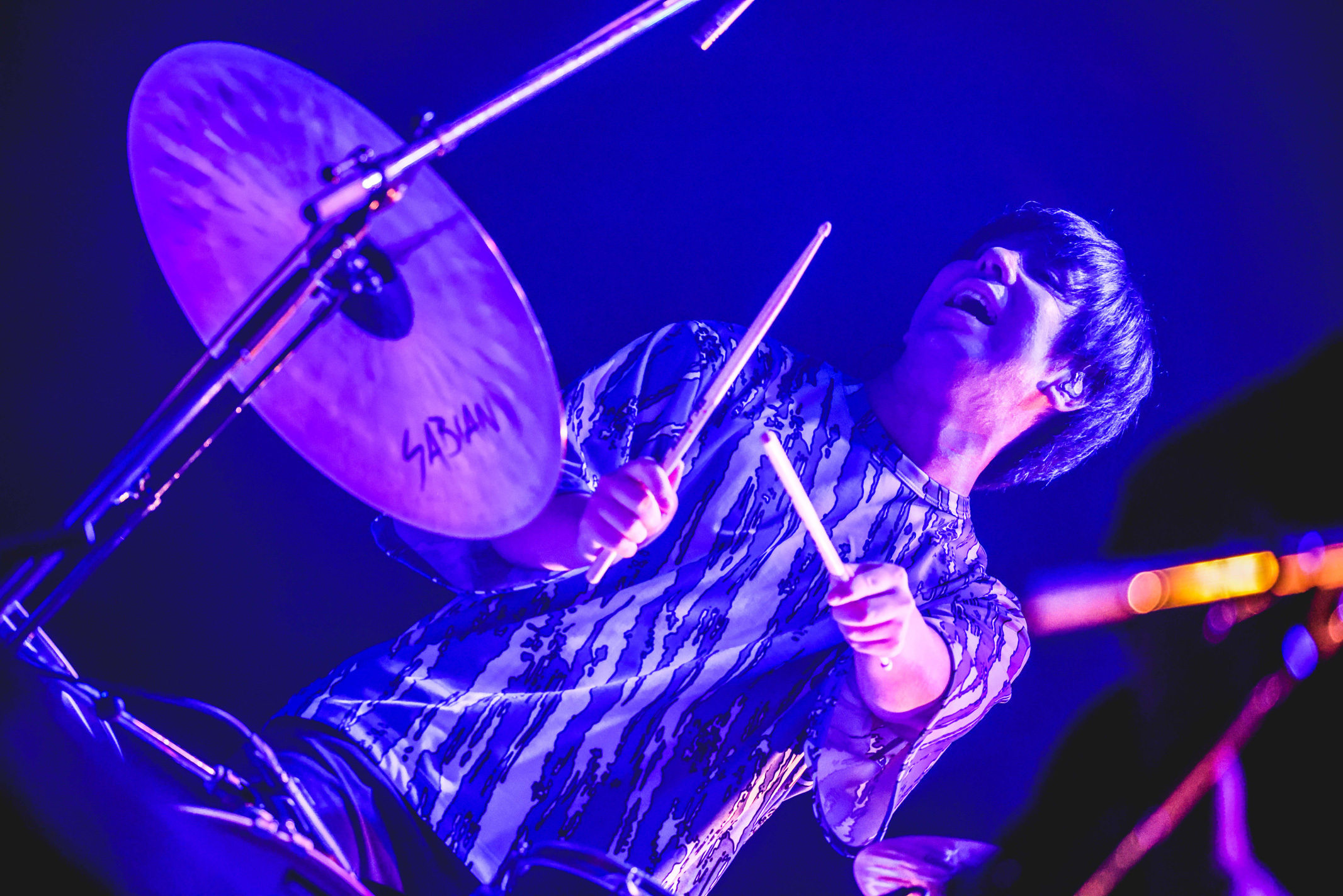 「まだまだいくよ!!」とはじめた大ヒット曲「Mela!」では、peppe(key)のグリッサンドが狼煙となり、クライマックスへと加速。上手下手、後方席へも近づき、躍動感たっぷりに歌唱する長屋、小林壱誓と穴見真吾(Ba)のセッションなど圧巻のパフォーマンスに釘付けになった。最後は、リラクシンなムードと力強さが共存する「キャラクター」で存在感を見せつけ、あっという間の30分を締めくくった。
