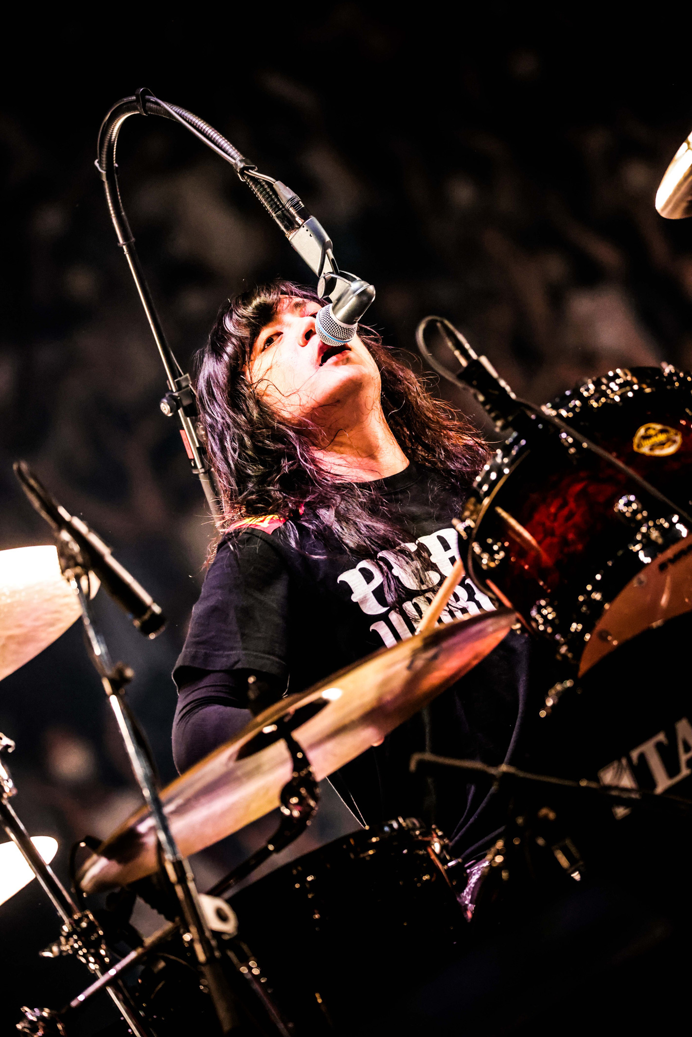 大阪城ホールのスケールをしっかり満喫する3人だった。でも、これだけでは終わらないのがヤバT。ラストソングの「かわE」では、ステージ後方のお客さんに見えるように、もりもとのドラムが一回転(人力)! 残り時間3分で超高速「Tank-top of the world」をつめこみ、曲中にカウントダウンしながら「もりもと~! 早すぎる!」と12秒残しでフィニッシュ! 1秒も無駄なく楽しませるという、ライブ筋力ムキムキの3人が去ったあとも、大阪城ホールはしばらくザワついていた。