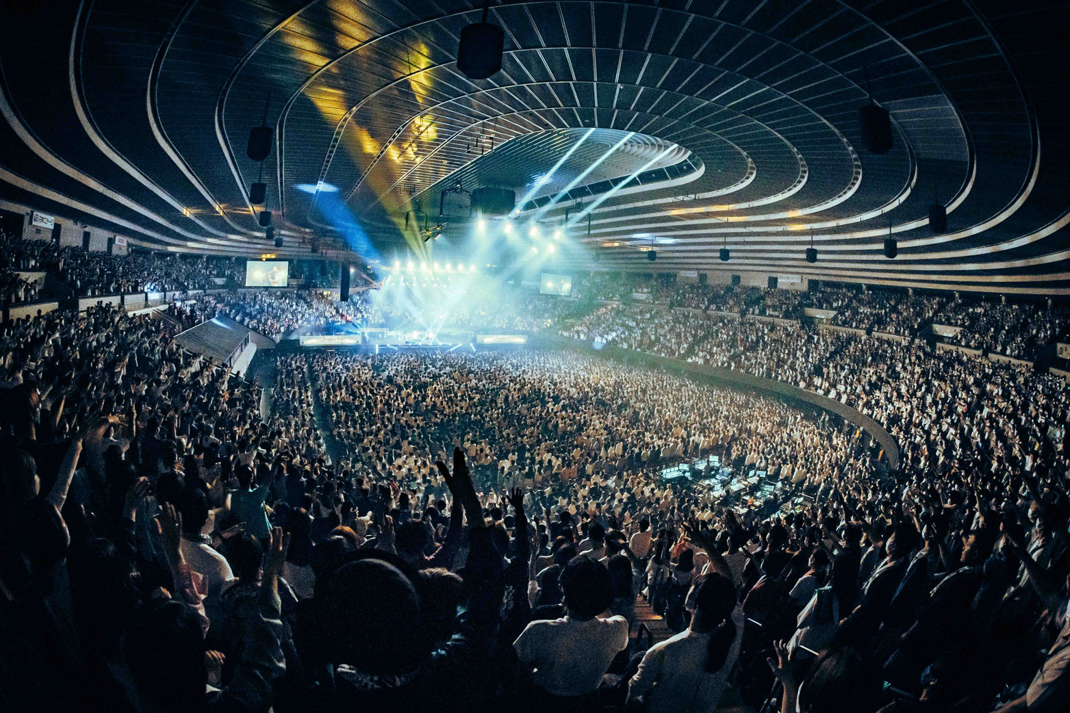 続く「YONA YONA DANCE」では、三原康司(Ba)、高橋武(Dr)のダンサブルなビートが大阪城を揺らし、「KITAKU BEATS」へと続く神セトリで踊り続けるアリーナはディスコ状態に。MCでは、FM802がはじめてバンドの曲をかけてくれた日から今まで10年続く同局との想い出を語る場面も。そんな現在地を確かめるように披露された初期の名曲「峠の幽霊」では、健司の弾き語りからしっとりと魅了した。