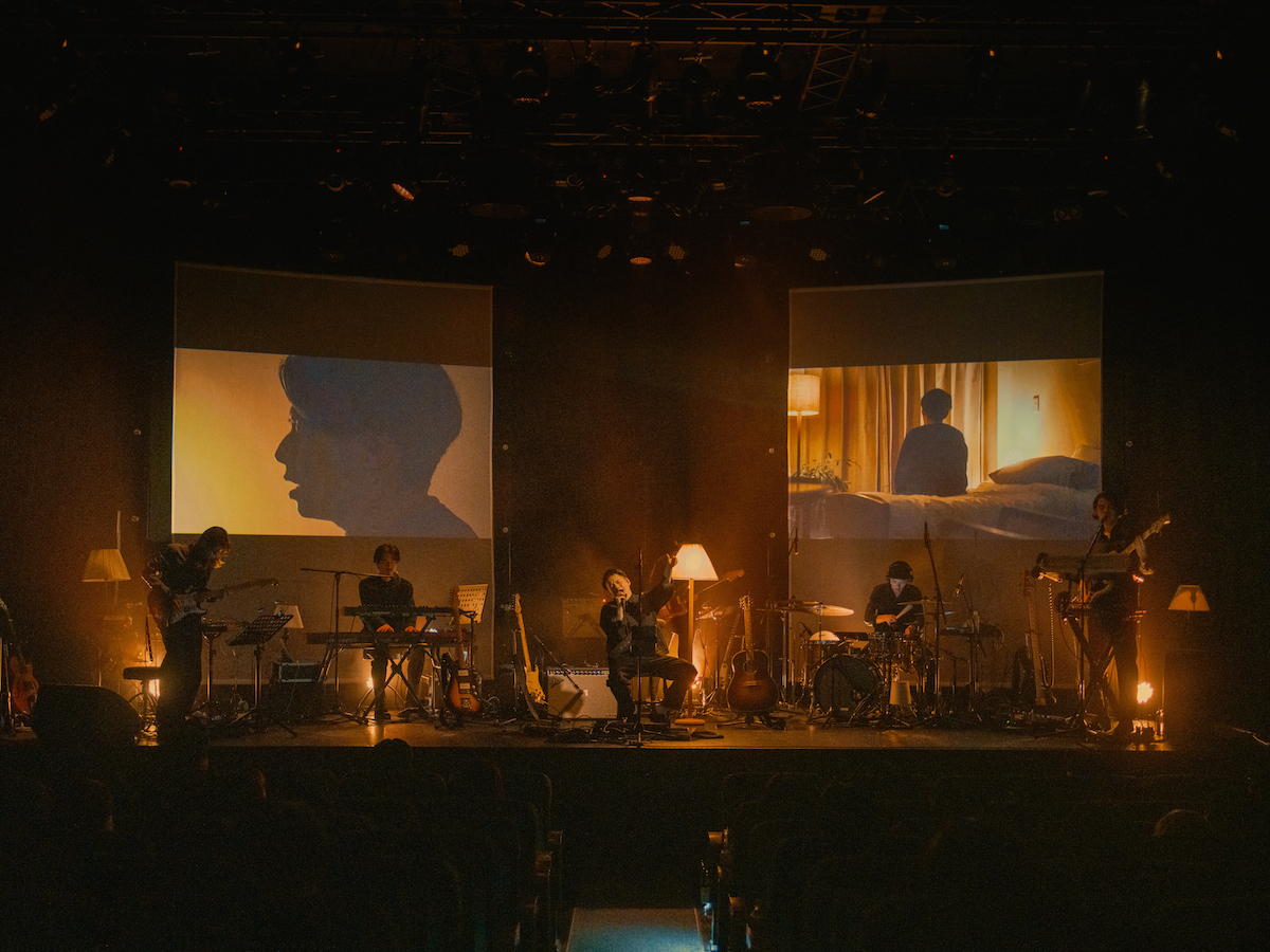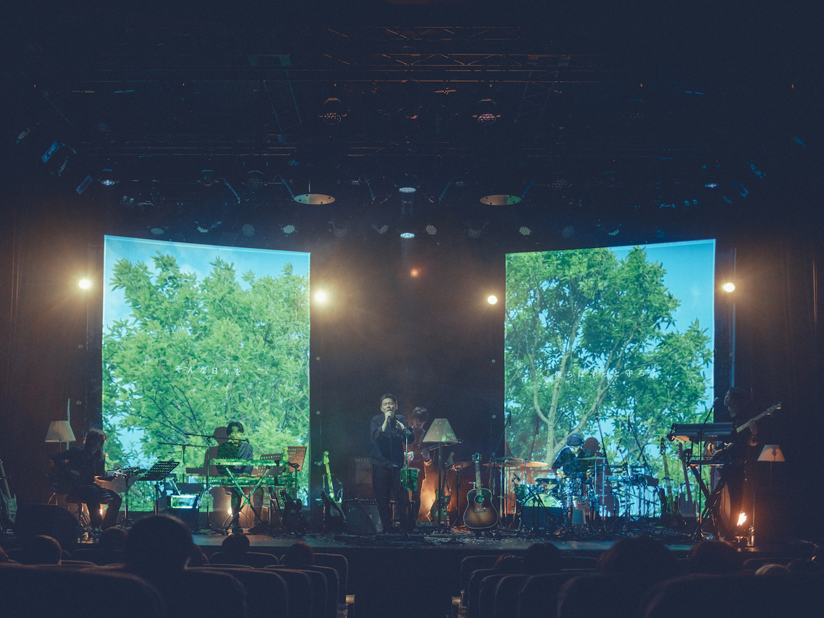 会場に入ると3月同様に背景には左右2つのスクリーンが配置され、大小のスタンドライトは5つ置かれている。今回も演出は石向洋祐(POOL inc.)、映像は写真家の濱田英明だ。