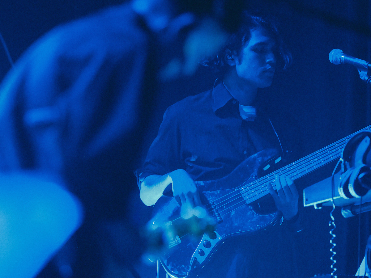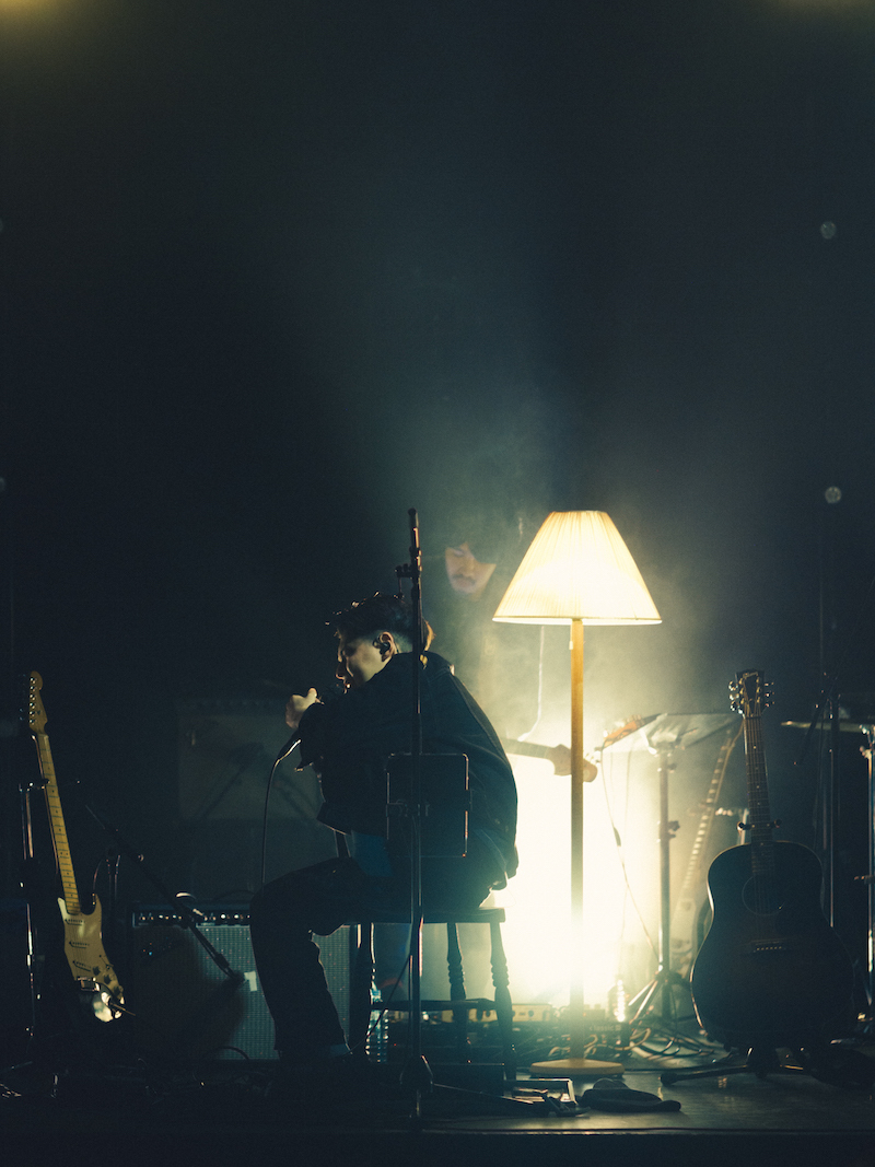 今年の3月以来、そしてステージを舞台のように見せる演出を施した『individuals』としては4回目となった今回。驚いたのは2Days公演のサポートメンバーが異なることだった。10月3日は3月同様、西田修大(Gt)と深谷雄一(Dr)。4日は、8月末にジム・オルーク、サム・ゲンデル、石若駿、細野晴臣ら錚々たるメンツを迎えた新作をリリースした岡田拓郎(Gt)、石若らとのバンド・SMTKや君島大空らとのユニットなどで活動する細井徳太郎(Gt)という、現代ジャズやエクスペリメンタルなシーンで活躍するギタリスト二人、そしてDATSとyahyelという所属バンド以外にもTHE SPELLBOUNDや先日の高橋幸宏50周年ライブのサポートでも注目された大井一彌(Dr)という、最新の音楽を牽引するメンバーが結集。ミュージシャンたちがどんな色を添えるのか?という興味と同時に、odolの楽曲の強度も確認できる側面も確実にあった。いずれにせよ個人的には過去最高にスリリングな顔合わせである。