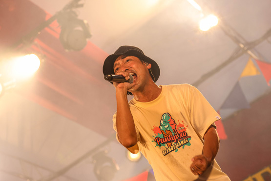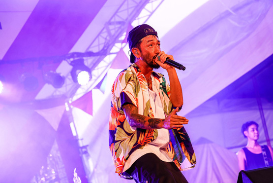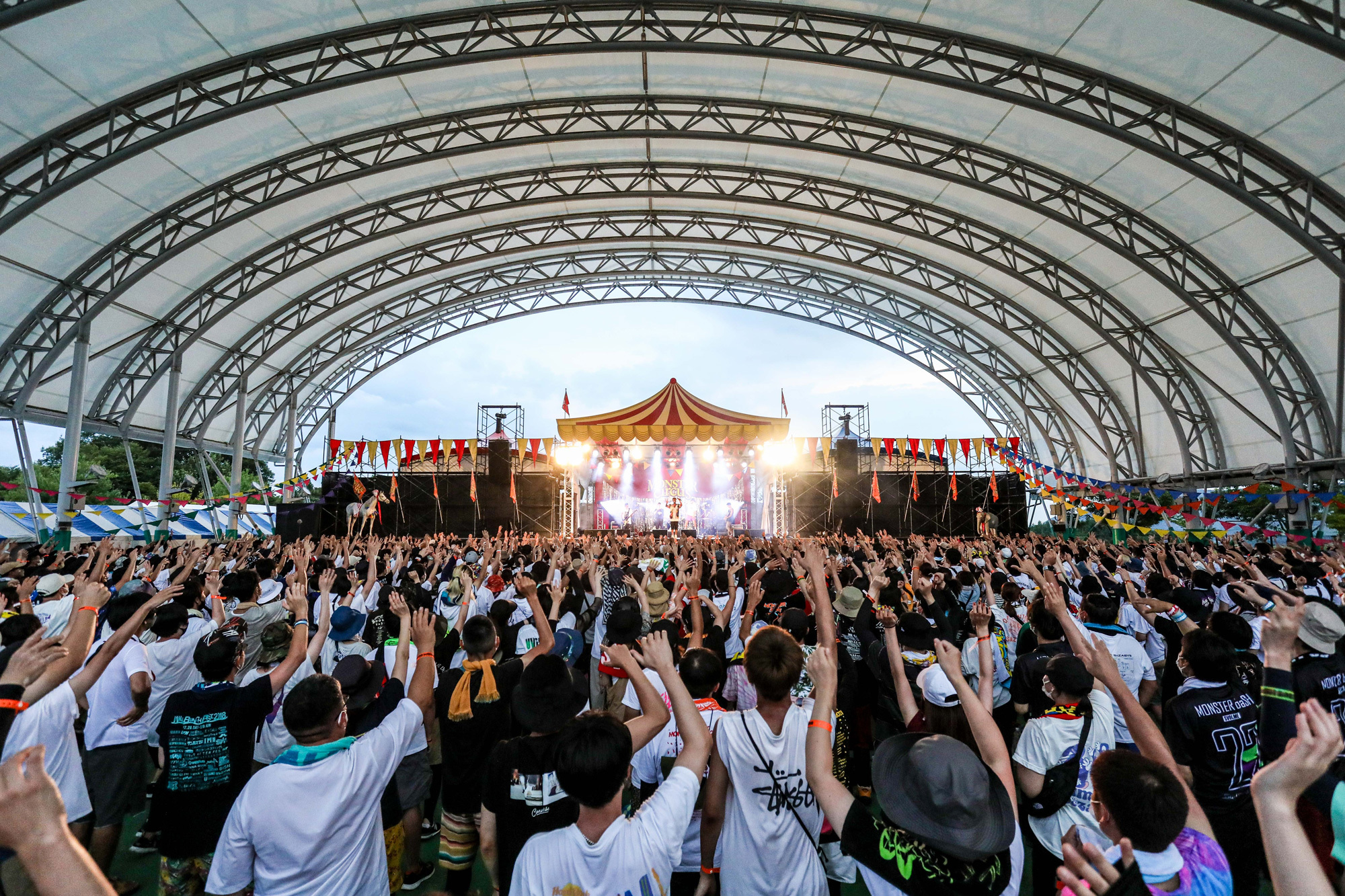 MONSTERcircusのトリは、5年ぶりの出演になるORANGE RANGE。「以心伝心」「ロコローション」の大ヒット曲二連発でスタート。「みんな、楽しんでますか?」と問うたRYO、フィールドを見回してから「……あたりまえのことは、きかん方がええな」。「キリサイテ 風」や「Pantyna feat.ソイソース」など、今年リリースしたばかりの新曲もオーディエンスを惹きつけていく。「屋根があるし、曇り空だけど、次は<いいね快晴じゃん>で始まる曲。ここを沖縄に染めたいわけ!」と突入した「上海ハニー」では、メンバーのリクエストに応えて、フィールドいっぱいにカチャーシーが広がった。「カチャーシー、もしかしたら今、モンパチさんもやってるかもしれない」。そうだ、STAGE空海も沖縄のバンドの時間だった。